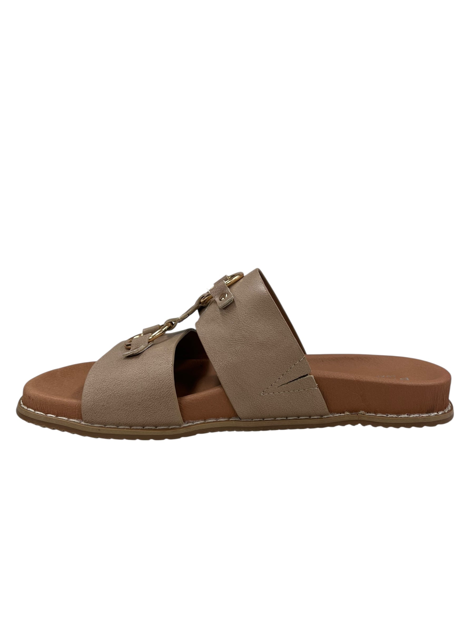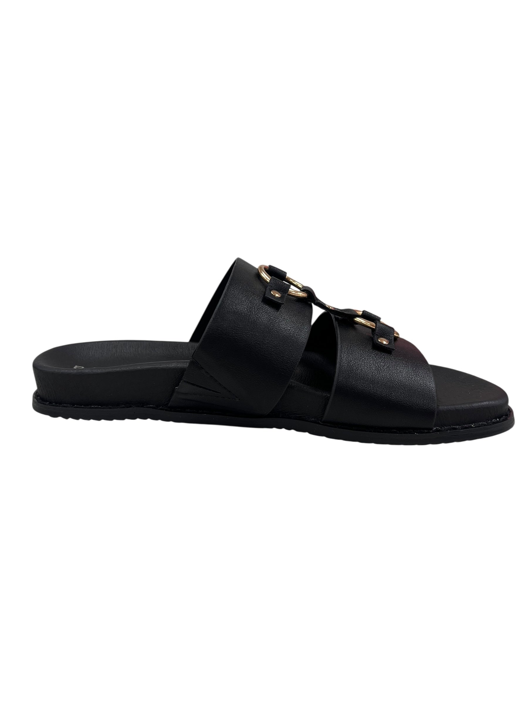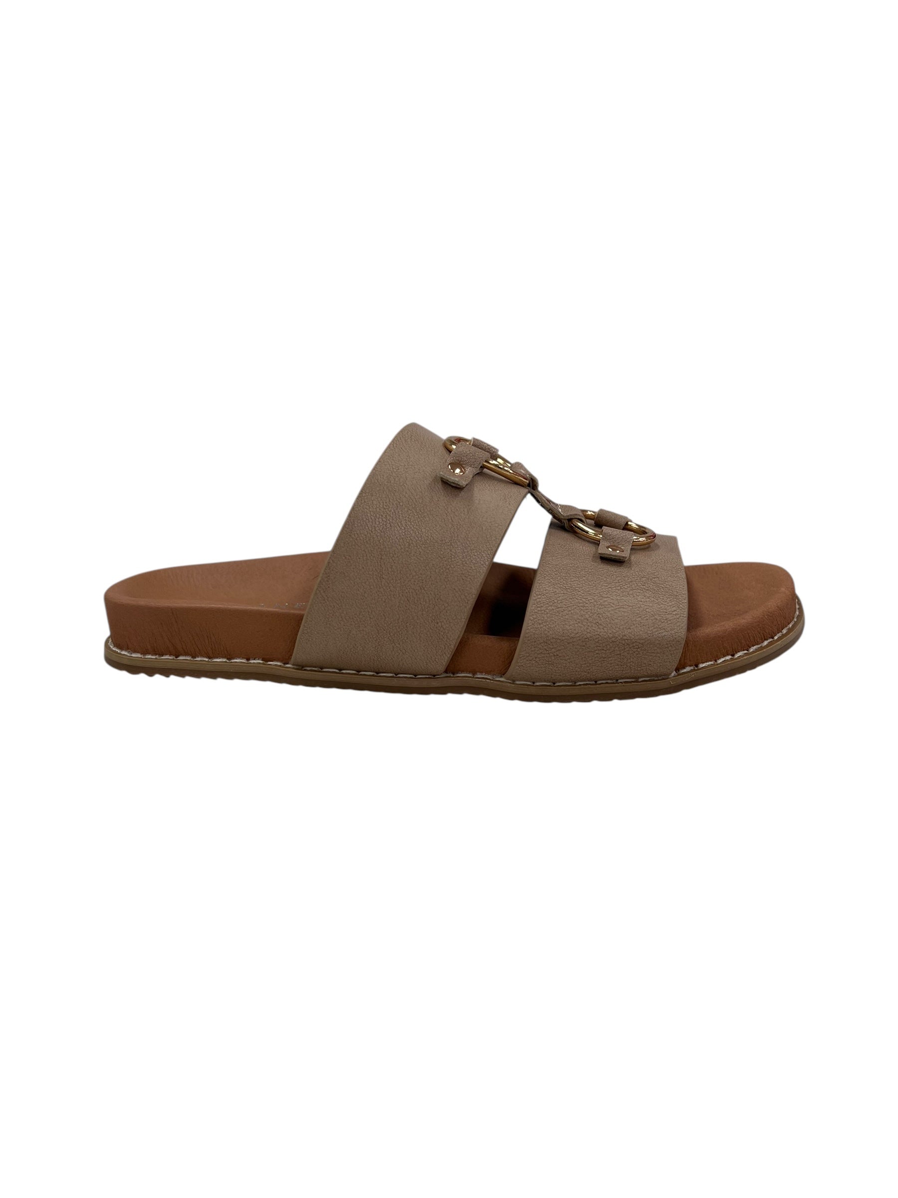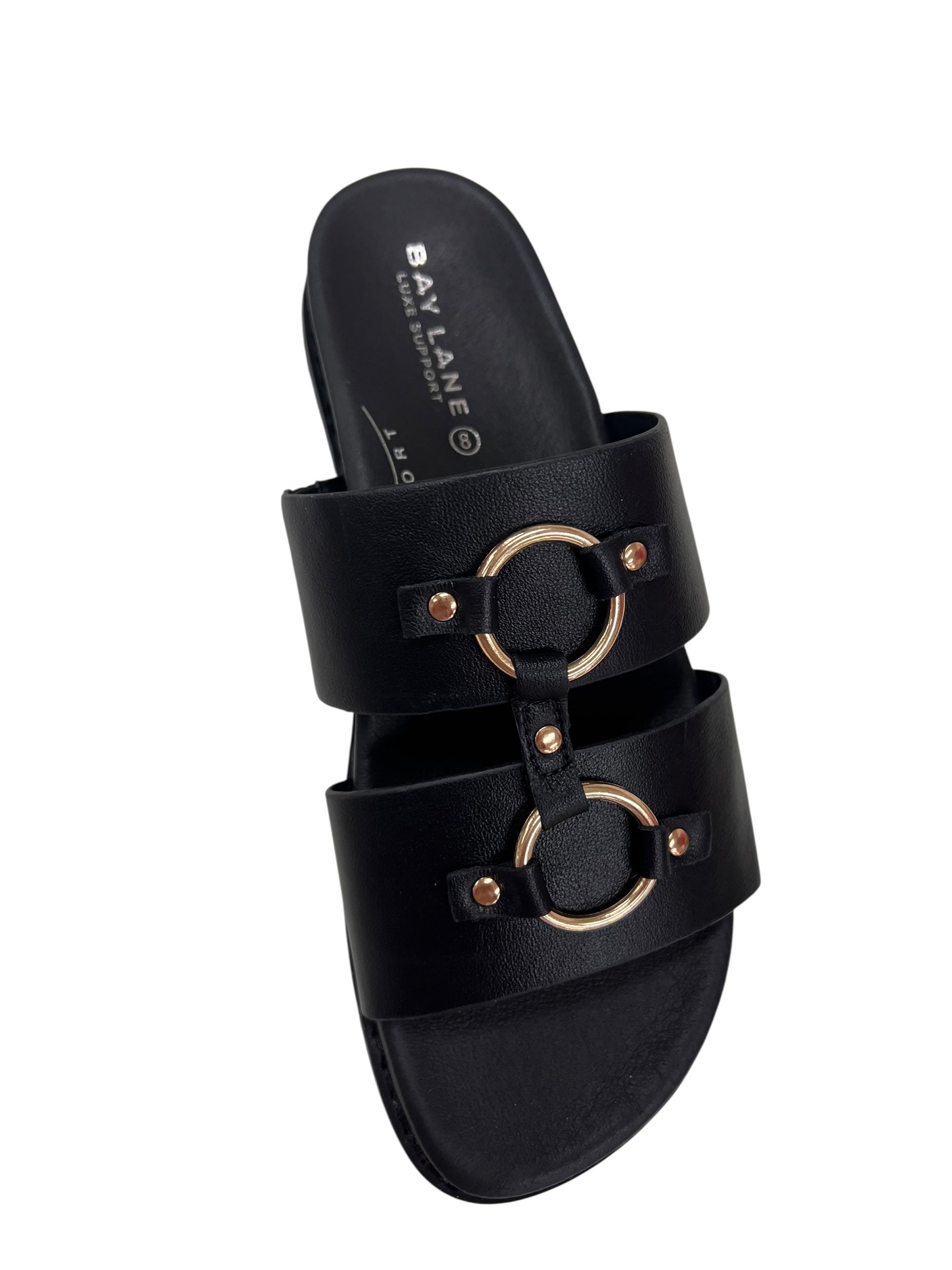 Step into stylish comfort with the Zuma slides, available in sleek black or warm latte. Designed with built-in arch support, these slides keep your feet happy all day long. Charming gold details add a touch of sparkle, making them perfect for lounging or a casual stroll. Easy to slip on and delightfully comfy, Zuma brings playful elegance to your everyday look.