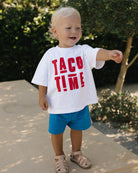 Add a splash of fun to your little one’s wardrobe with the Felix Tee - Taco Time. This crisp white tee features bold, unique red text that pops with playful charm. Perfect for kids who love to stand out, it combines comfort with a vibrant design that sparks smiles and taco cravings alike.