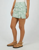 The Lucia Skort is a playful blend of style and comfort, featuring a flattering side slit and an organic geometric pattern in soft sage green and white. Its skort design offers the ease of shorts with the look of a mini skirt - perfect for sunny days out. Pair it with the matching Lucia Top and sandals for an effortlessly fresh spring set.