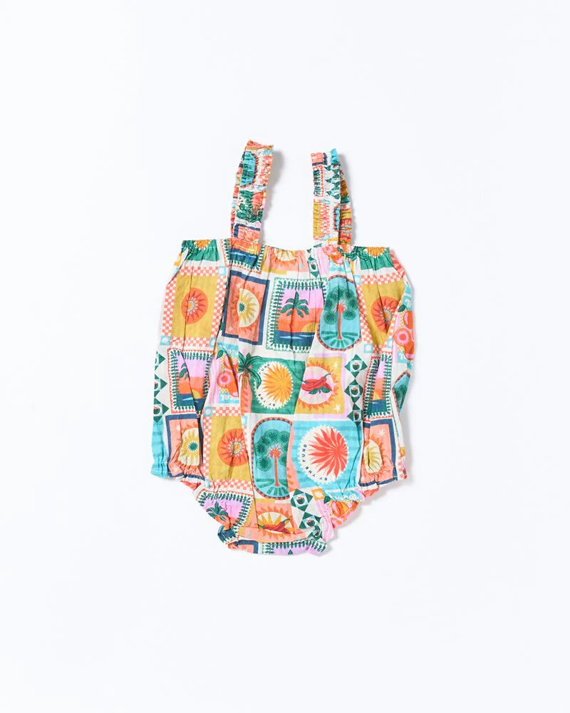 Get ready for sunny days with the Meadow Romper in Spicy Summer! This playful romper features wide straps for comfy wear and a vibrant summer print that brightens every adventure. Perfect for keeping your little one cool and stylish while exploring the outdoors.