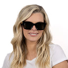 Our best-selling, 90s inspired Zahra sunglasses are a mid-sized style that will suit most face shapes and sizes. Zahra sunglasses are now available in a classic midnight black with polarised khaki tinted lenses.