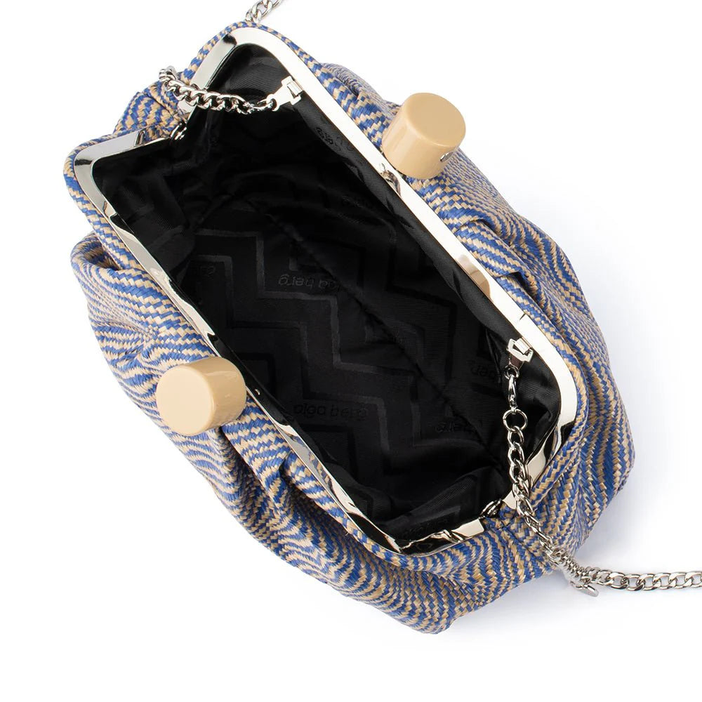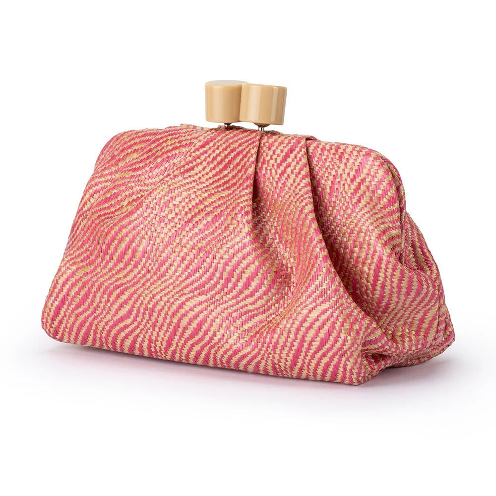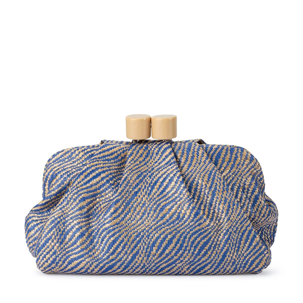 The ADDISON Woven Clutch showcases a beautiful textural fabrication that will add a touch of sophistication to any outfit. Perfect for both casual outings and special occasions due to its spaciousness, this acrylic lock topped clutch combines elegance with a resort vibe, making it a versatile must-have bag. It also includes a chain handle and a long shoulder chain for multiple styling options.