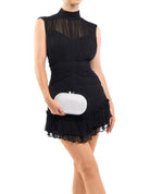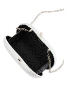 The LUCIA Woven Oval Clutch is the perfect blend of luxury and function. With its intricate woven metallic fabric, timeless hard case design, and convenient removable shoulder chain, this clutch is the ideal accessory for any special occasion. Create a beautiful statement with timeless elegance.