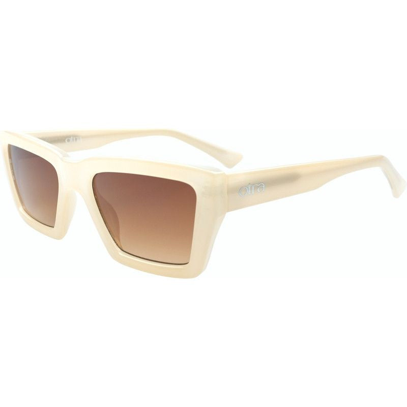 The Otra Fairfax in frosted ivory, features a contemporary design highlighted by flattering geometric angles that elevate your style. Enhanced with soothing brown gradient lenses providing 100% UV protection, these shades not only exude confidence but also ensure you're shielded from the sun, allowing you to project authority and enjoy comfort effortlessly.