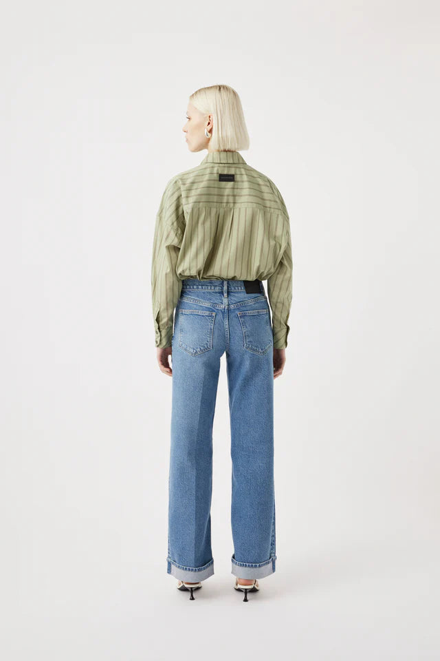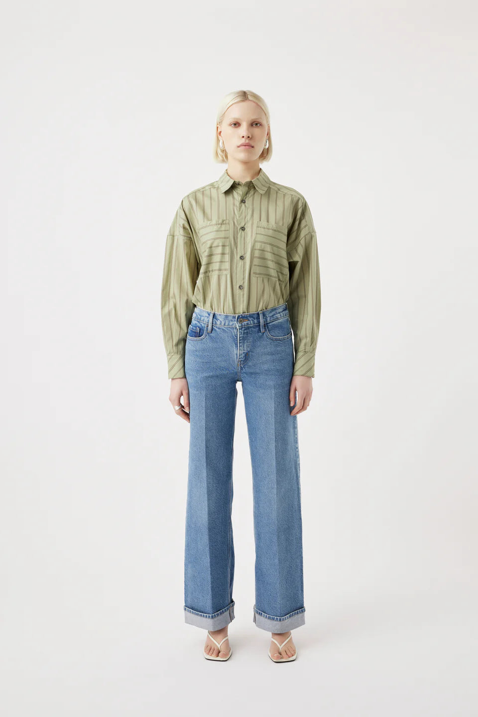 Mia Cuffed Mid Wide Long Jean - Meridian Mid Blue