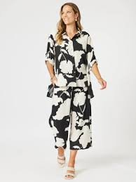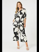 Barcelona Floral Print Wide Leg Pant - Black/Natural