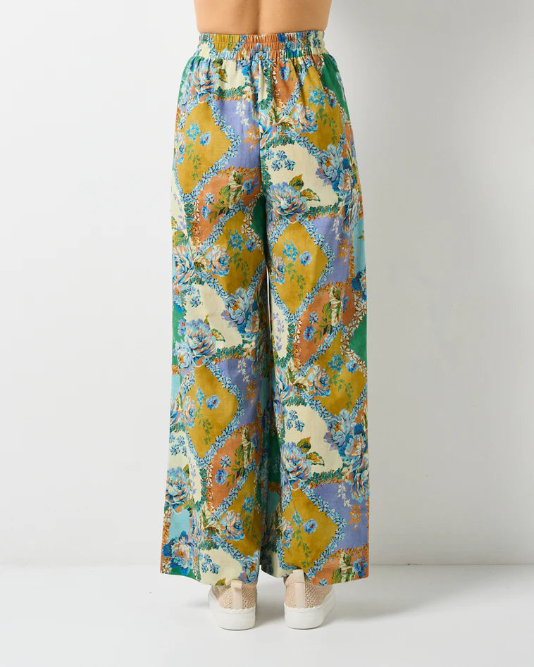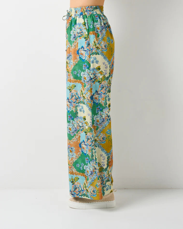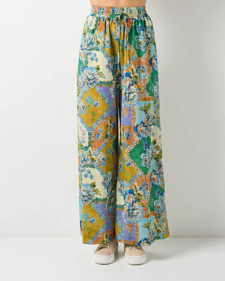 The Vermont Pant is a statement piece, designed to offer both comfort and flair. Featuring a high-waisted, wide-leg silhouette, these pants provide a relaxed fit that moves effortlessly with you. The elasticated waistband adds comfort and ease, while the eye-catching prints, such as "Jaguar Jungle," "Peony Patchwork," and "The Aviary," bring a bold touch to any outfit. Perfect for both lounging and casual outings, the Vermont Pant can be paired with simple tops or coordinated with matching prints for a striking, cohesive look.
