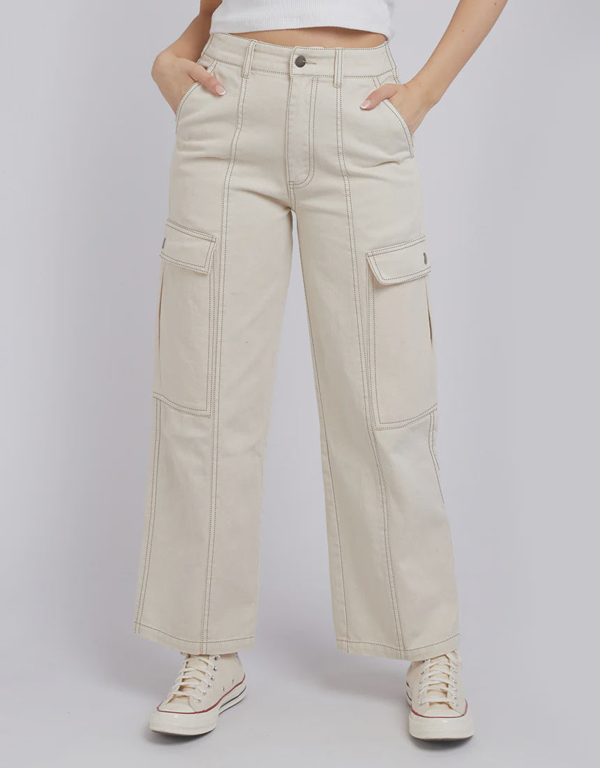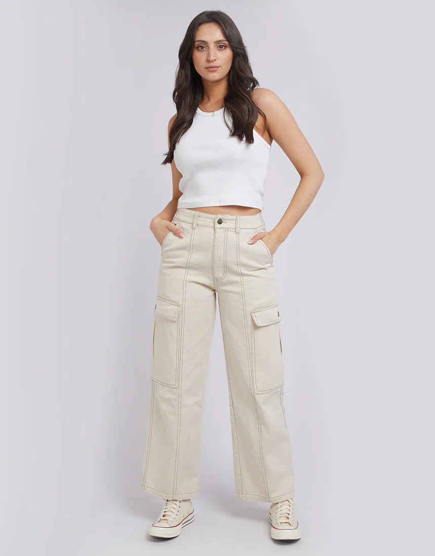 Get ready to take on any adventure in the Stevie Cargo Pant! With its elastic waist and cargo style, you'll have both comfort and style. The cream color and tan stitching add a touch of versatility to this playful pant. Perfect for a day of exploration (and maybe a little mischief)!