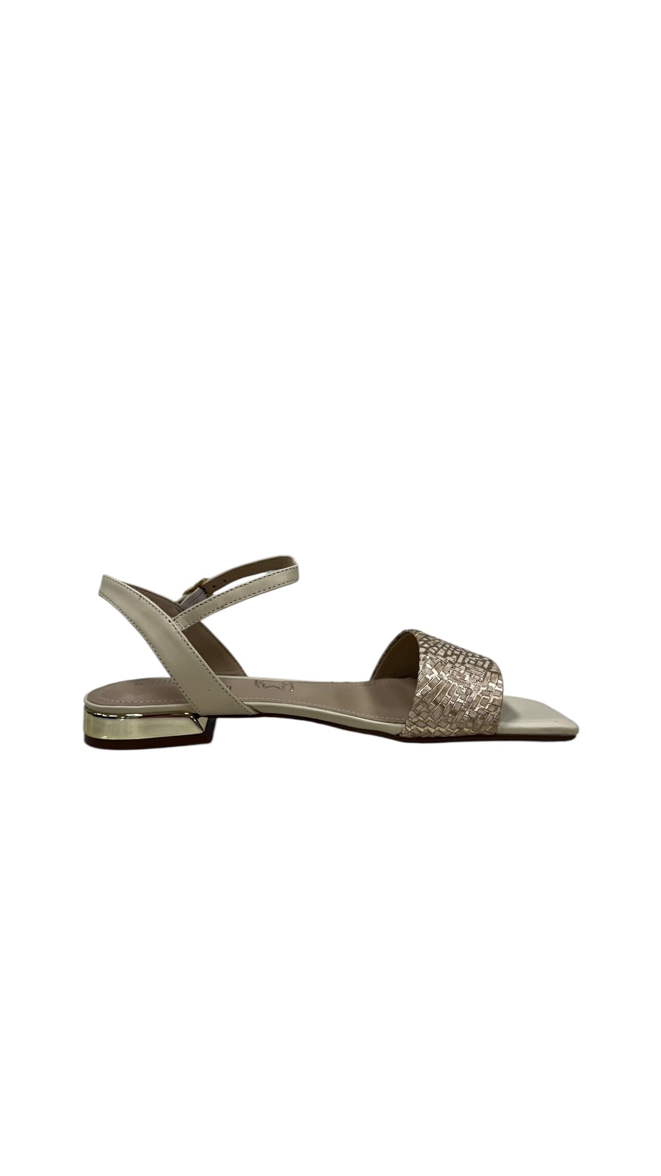 Step out in style with the Birdie – Gold/Nude leather sandal. Featuring a chic square toe and a sleek dressy flat design, it combines comfort with a touch of glamour. Perfect for adding a playful sparkle to any outfit, these sandals bring effortless elegance to your wardrobe.