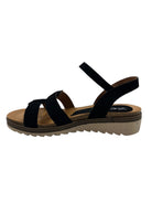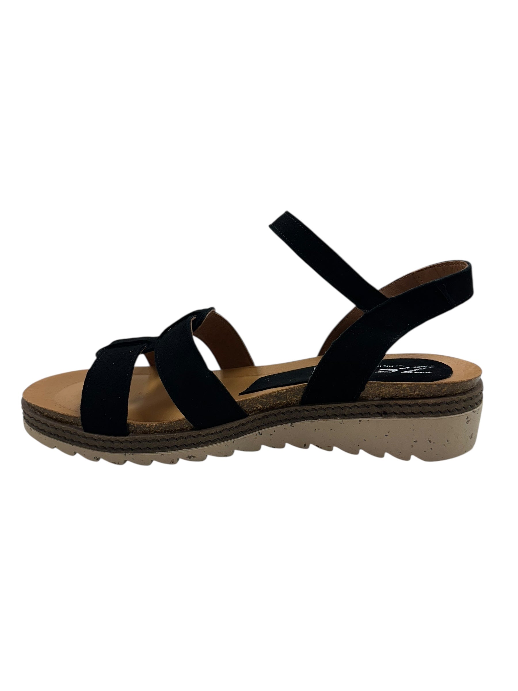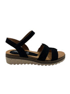Step into comfort with Leisl, your new go-to black sandal. Crafted from soft suede-like material, this laid-back style features an adjustable velcro ankle strap that keeps your foot secure without the fuss. Whether you're running errands or kicking back, Leisl delivers effortless style with a touch of fun. Easy on, easy off—because life's too short for complicated footwear.