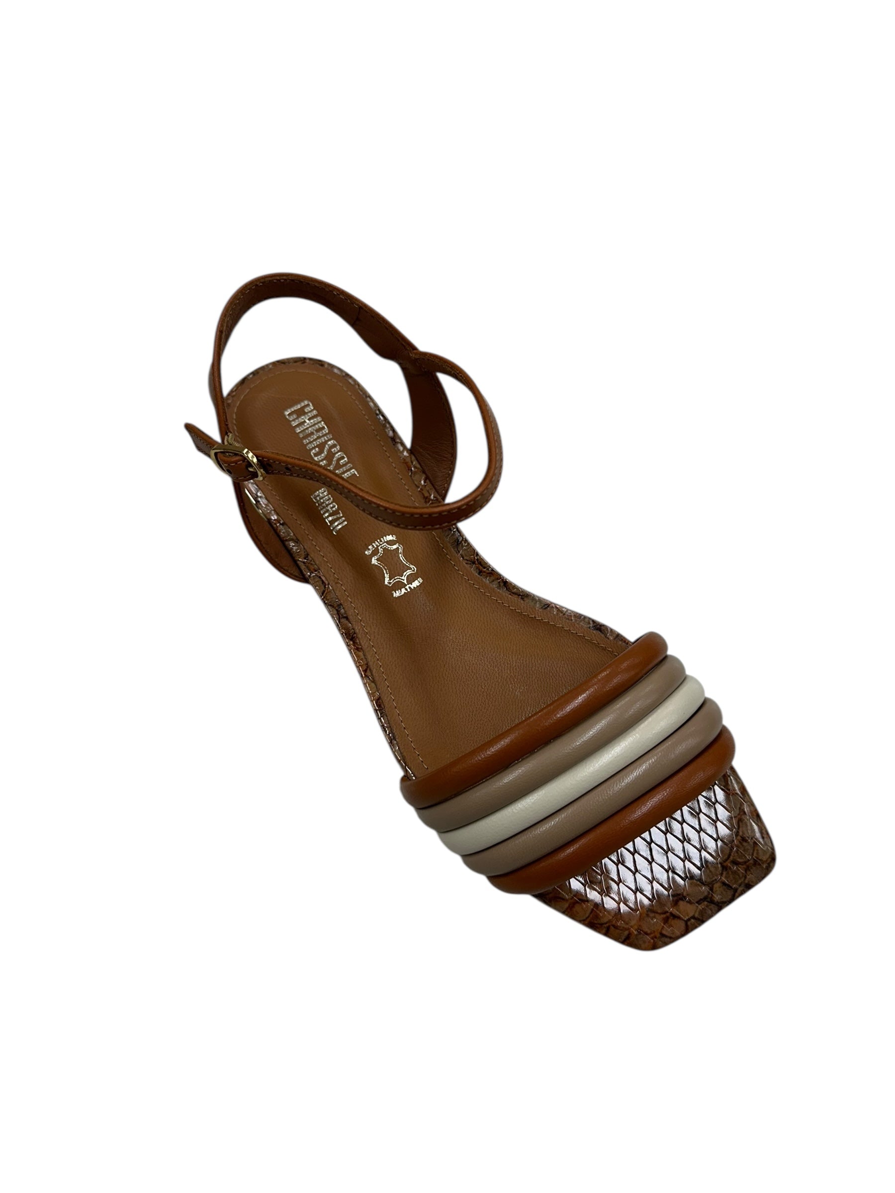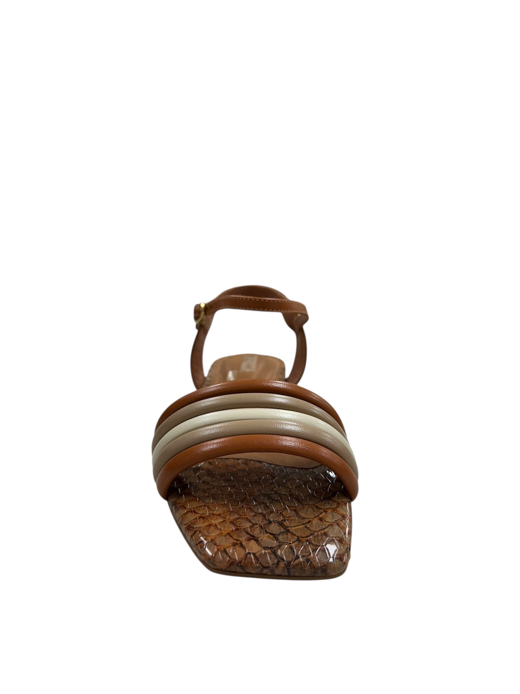 Step into style with the Rain sandal —a playful take on everyday elegance. This tan beauty features a striking snake print detail that adds just the right amount of edge, while a gleaming gold heel detail catches the light with every step. The adjustable ankle strap ensures a custom fit that feels as good as it looks, keeping you secure and comfortable whether you're heading out for brunch or a night on the town. Versatile, chic, and undeniably fun.
