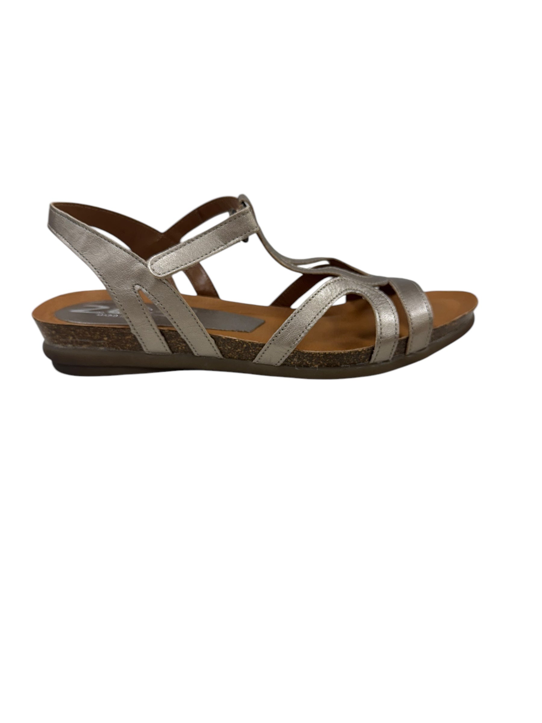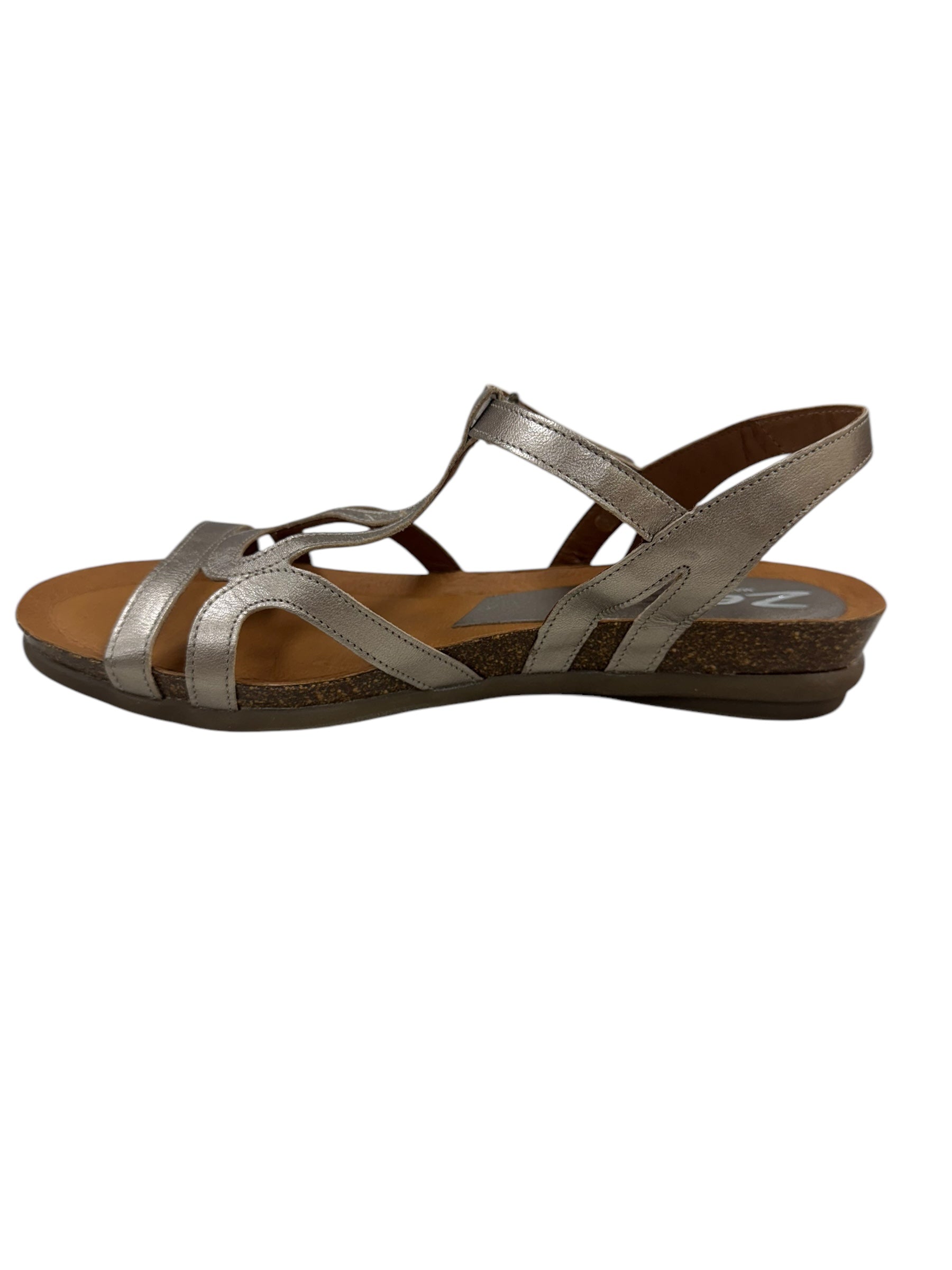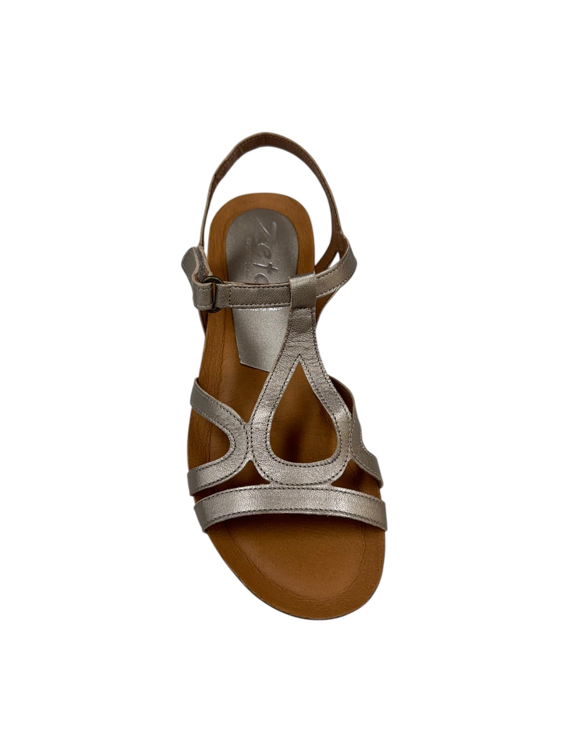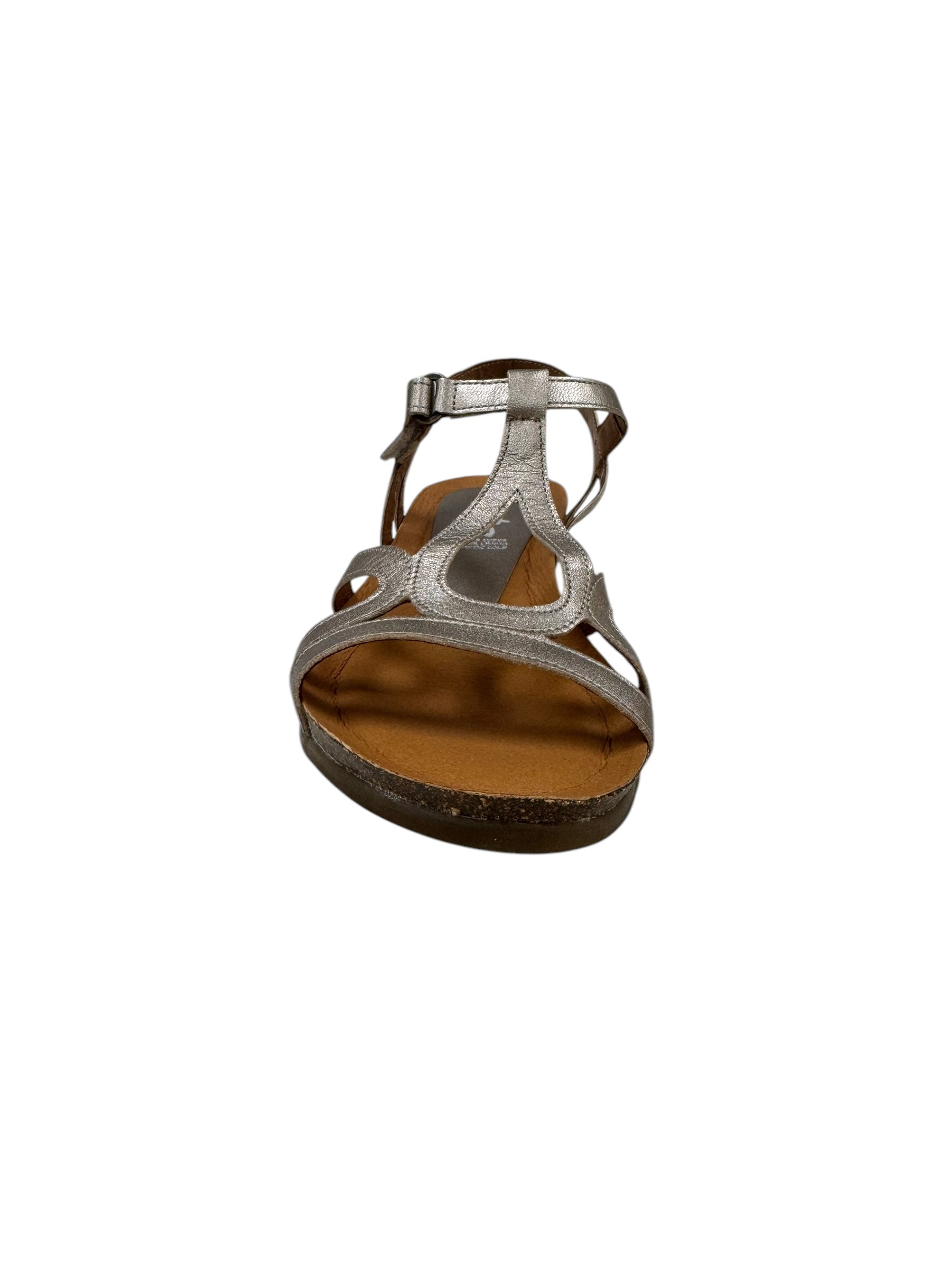 Next Level Comfort: Upgrade your shoe game with our Rapt sandals, featuring unique detailing and an adjustable velcro strap for a perfect fit. Experience the luxury of leather-lined, handmade soles from Spain, made with a wide fit for all-day comfort. The metalic colour is sure to make a statement!