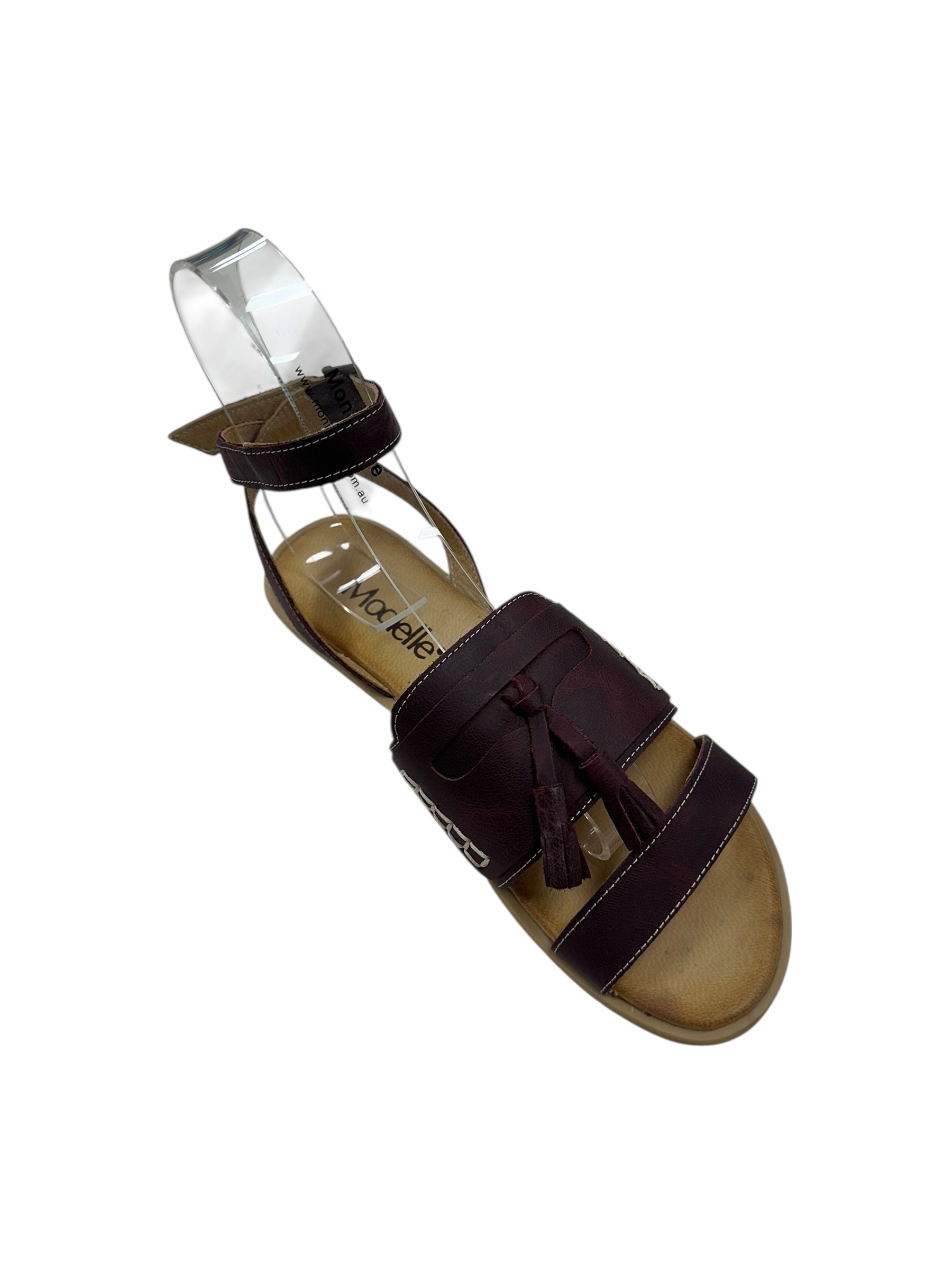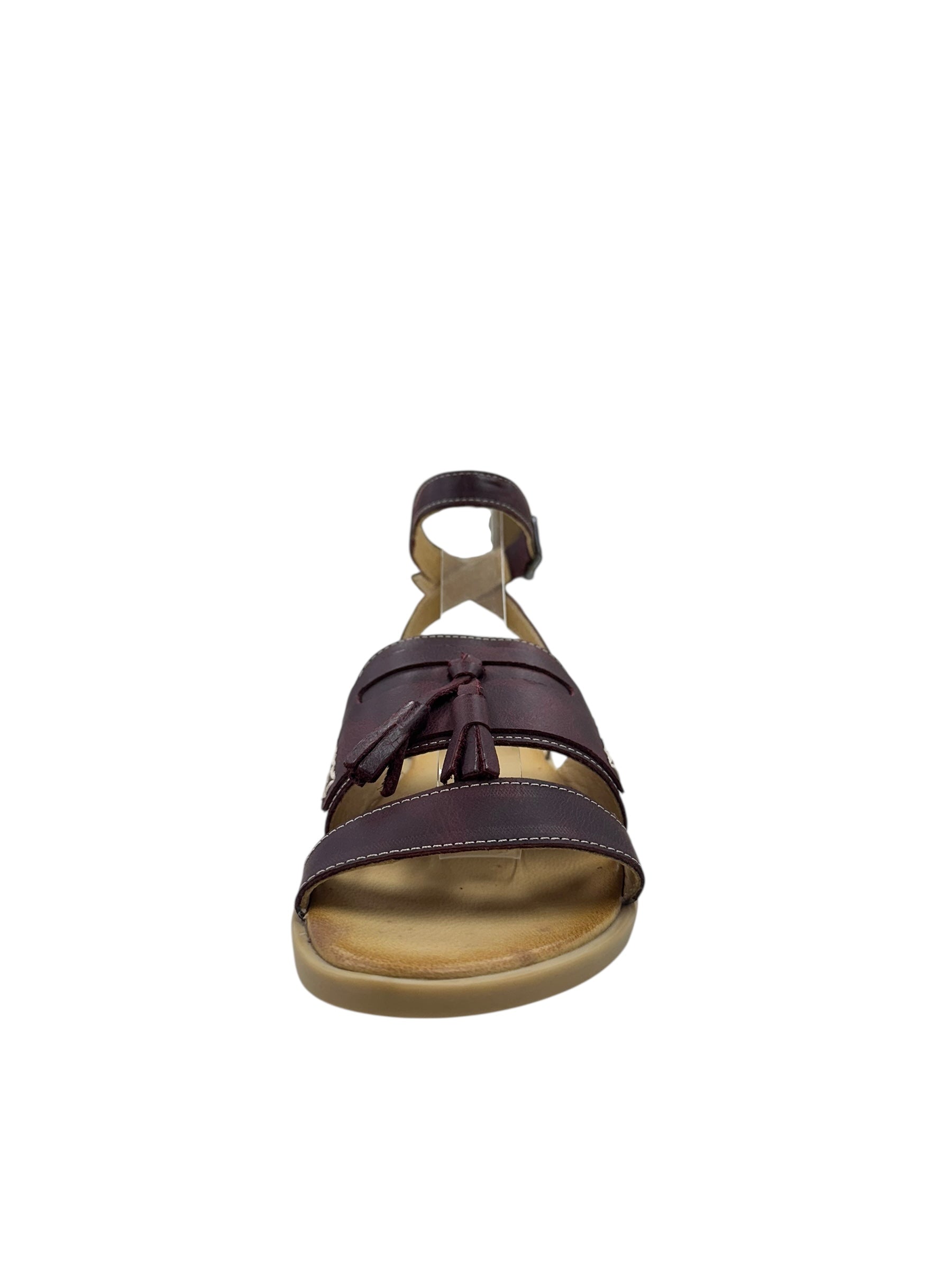 Step into effortless style with the Sophie Sandal, where burgundy elegance meets playful charm. This beauty features a fun tassel detail that adds personality to every step, while an adjustable ankle strap keeps you secure and comfy all day long. The crisp white stitch detailing brings a fresh contrast that makes these sandals a versatile go-to for casual outings or weekend adventures. Slip them on and let your feet do the talking!