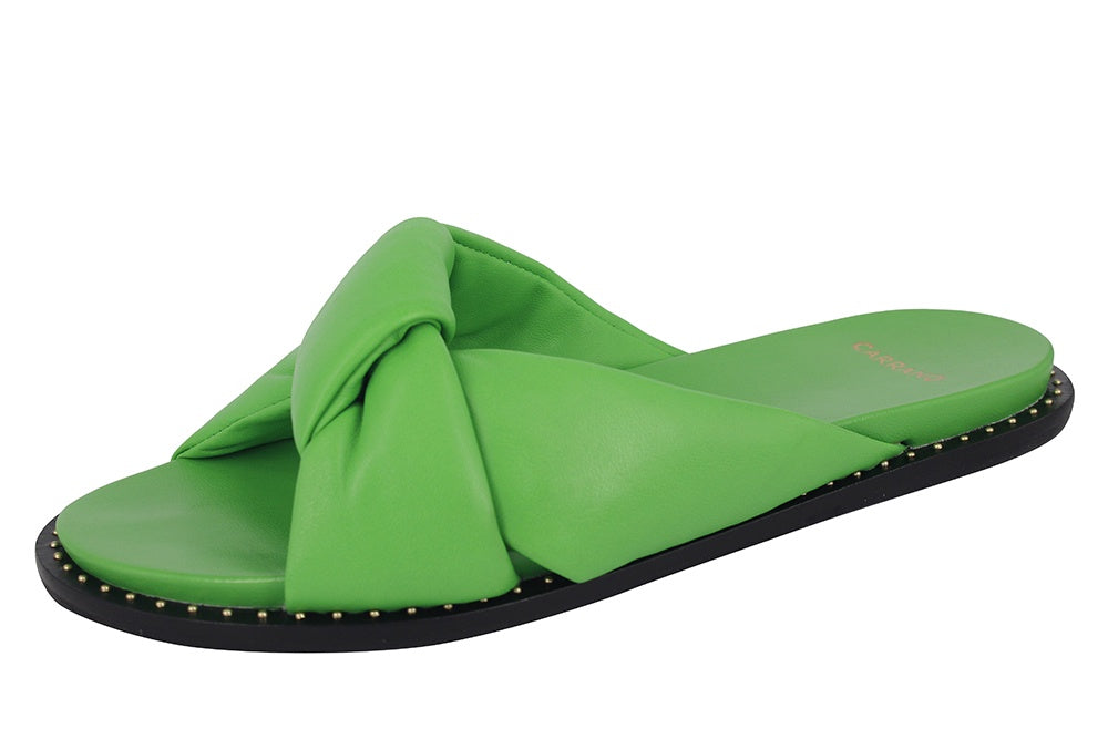 Slip on luxury with these Melin Leather Slides! Crafted from green leather, these stylish slides feature a padded upper for extra comfort and gold stud detailing for a touch of glam. Get ready to strut around in style!