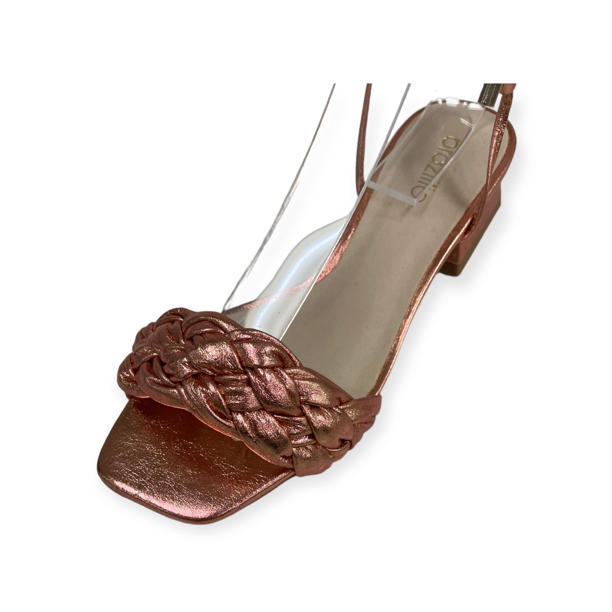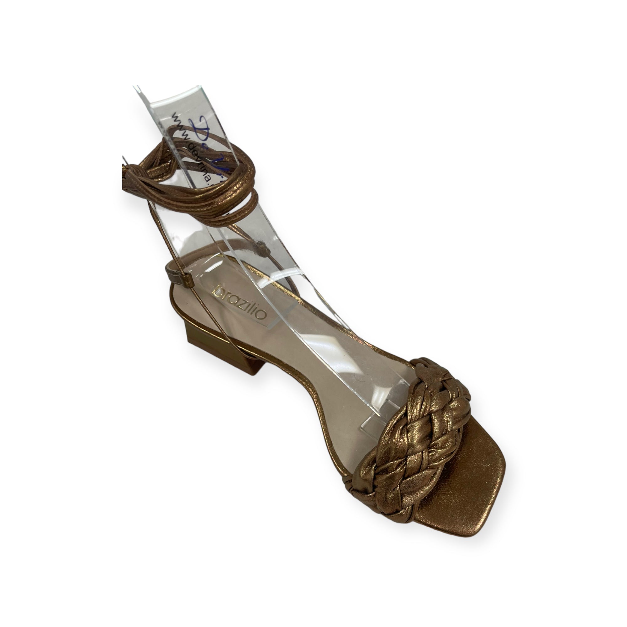 The Brazilio Carrie Leather Sandals features a block heel, square toe, tie up straps, and a braided forefoot strap. Available in Bronze and Rose, this heel will match any outfit and keep you comfortable all night long.