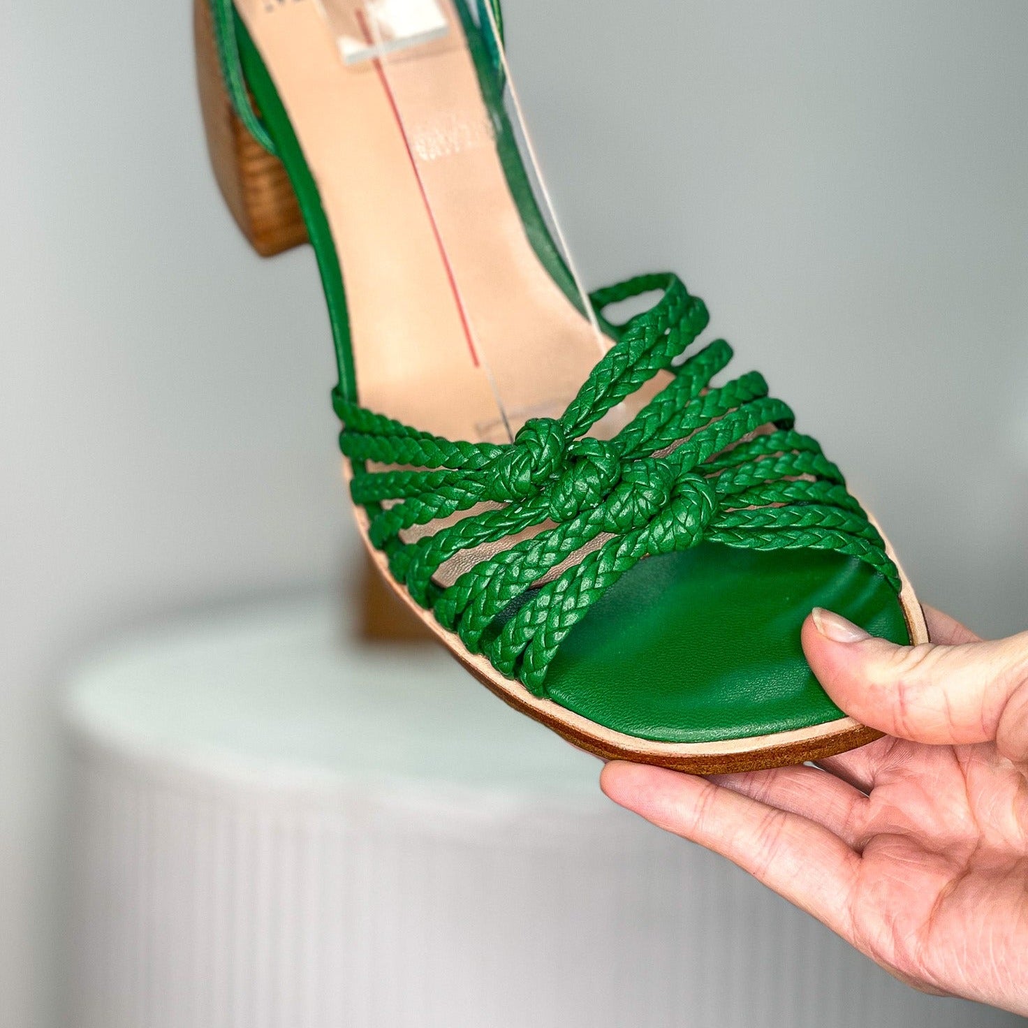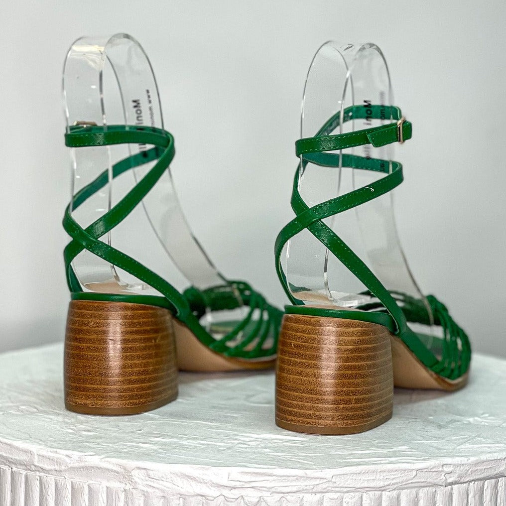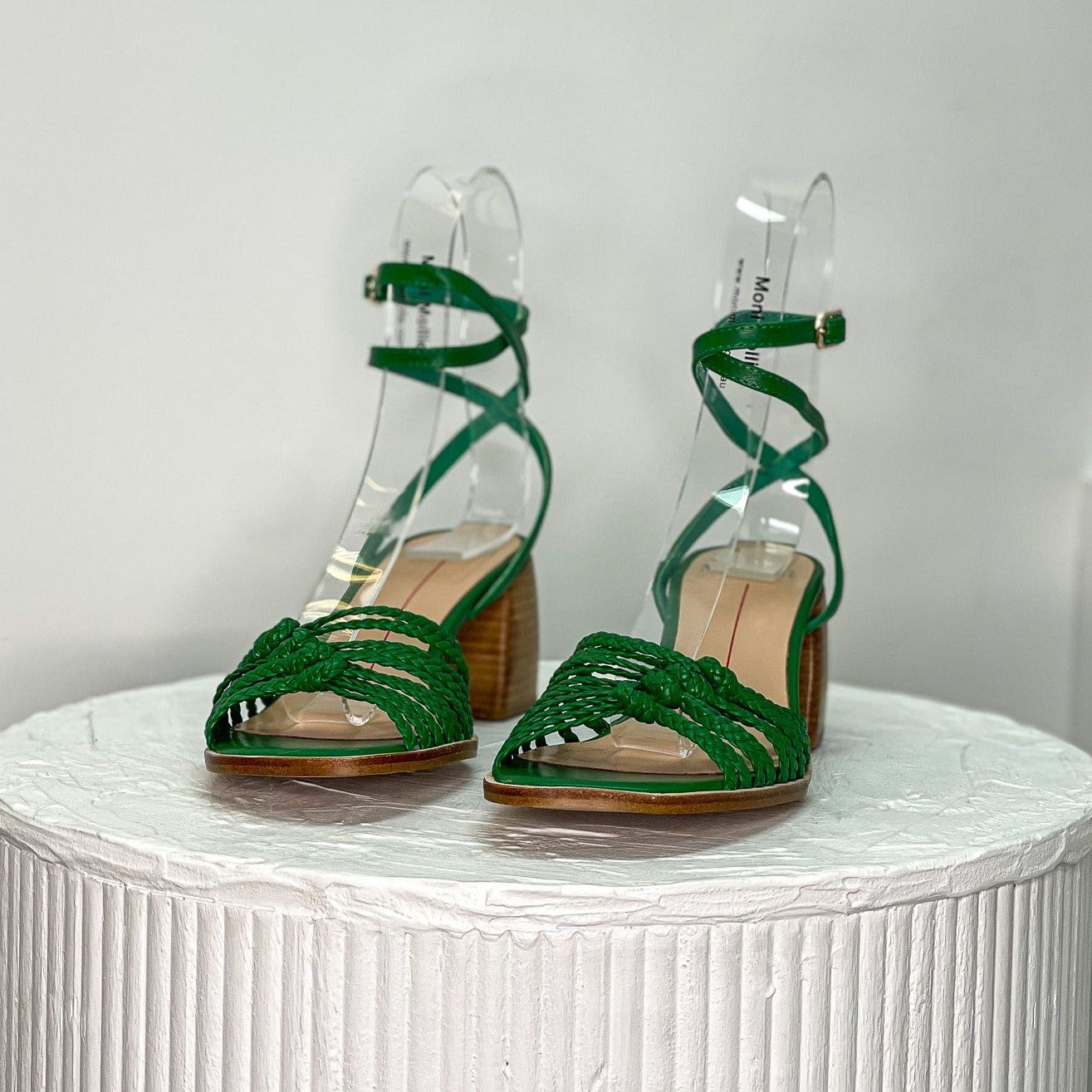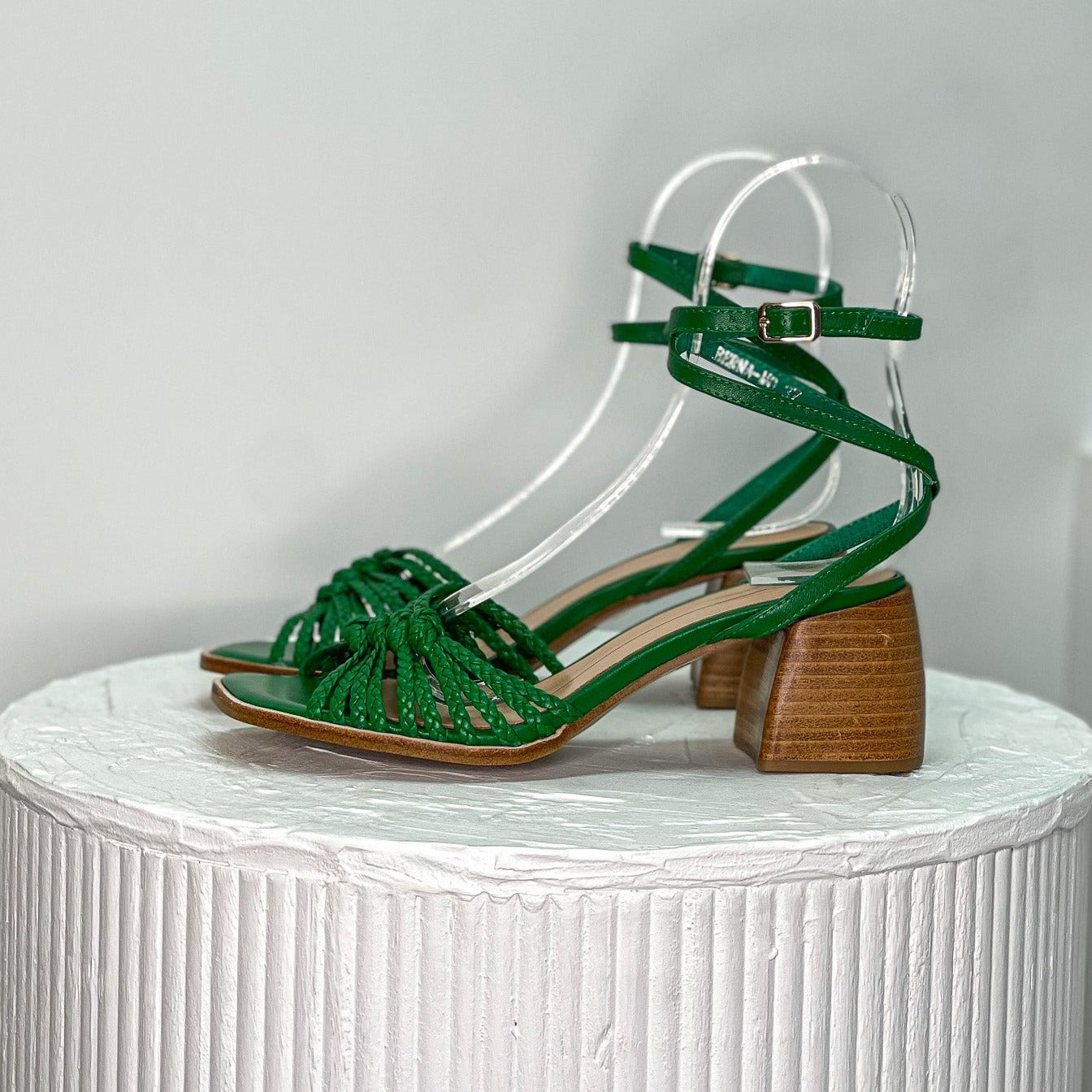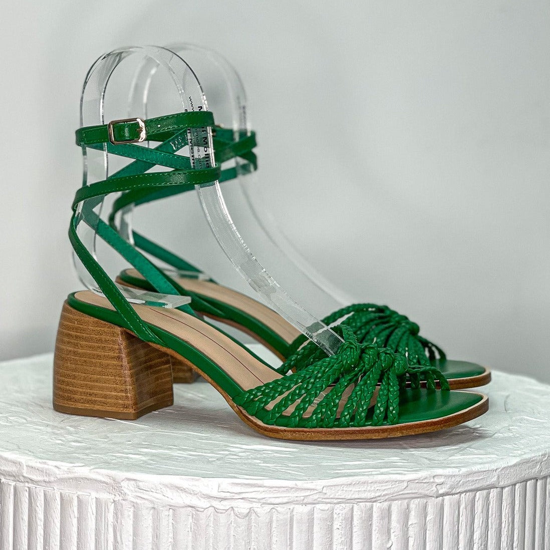 Take a risk with Berna - Green, a daring strappy sandal with a timber stack block heel and eye-catching knotted rope design. Unleash your wild side in style with these must-have shoes: all eyes will be on you as you take on the world. Let's go!