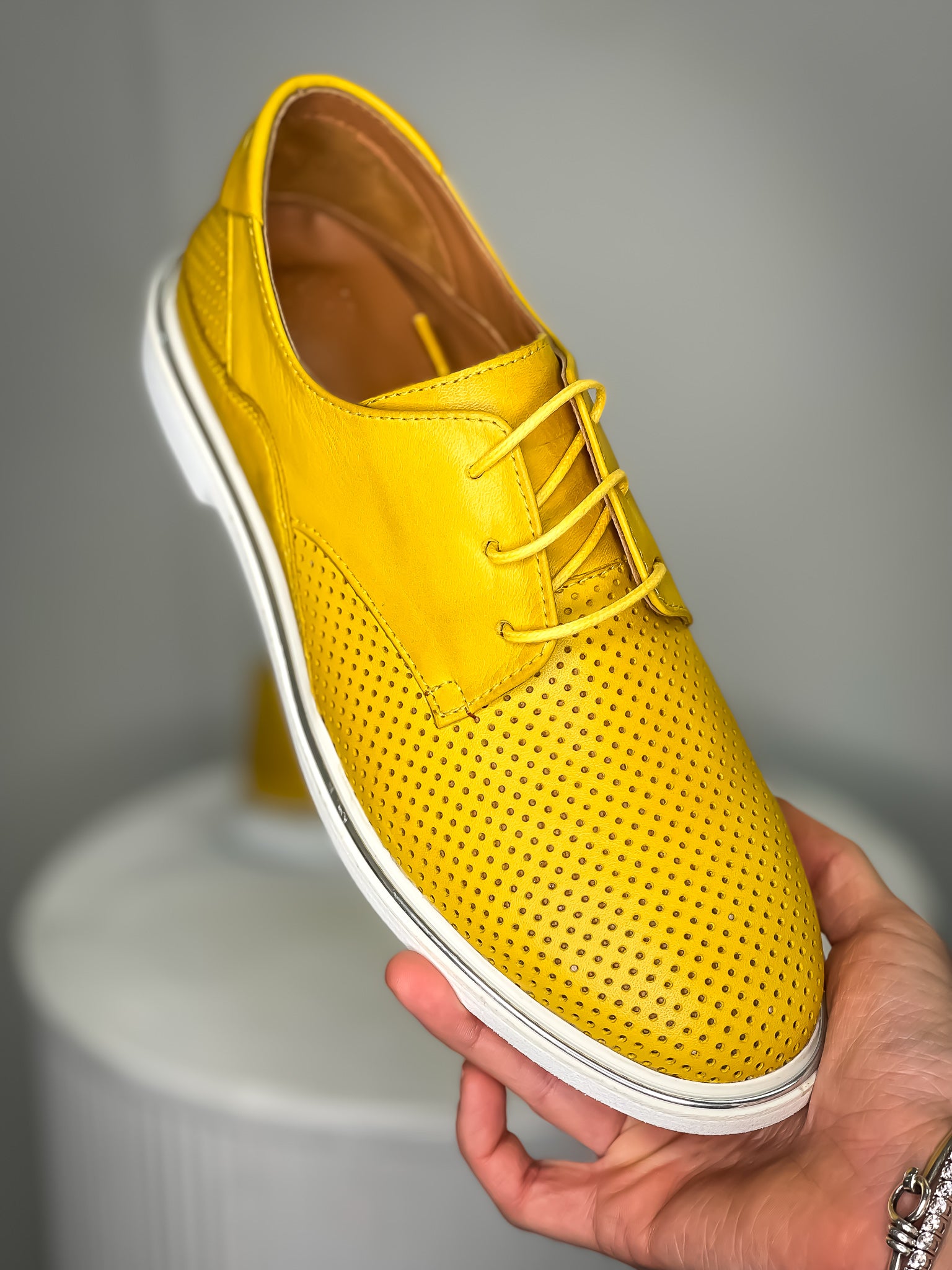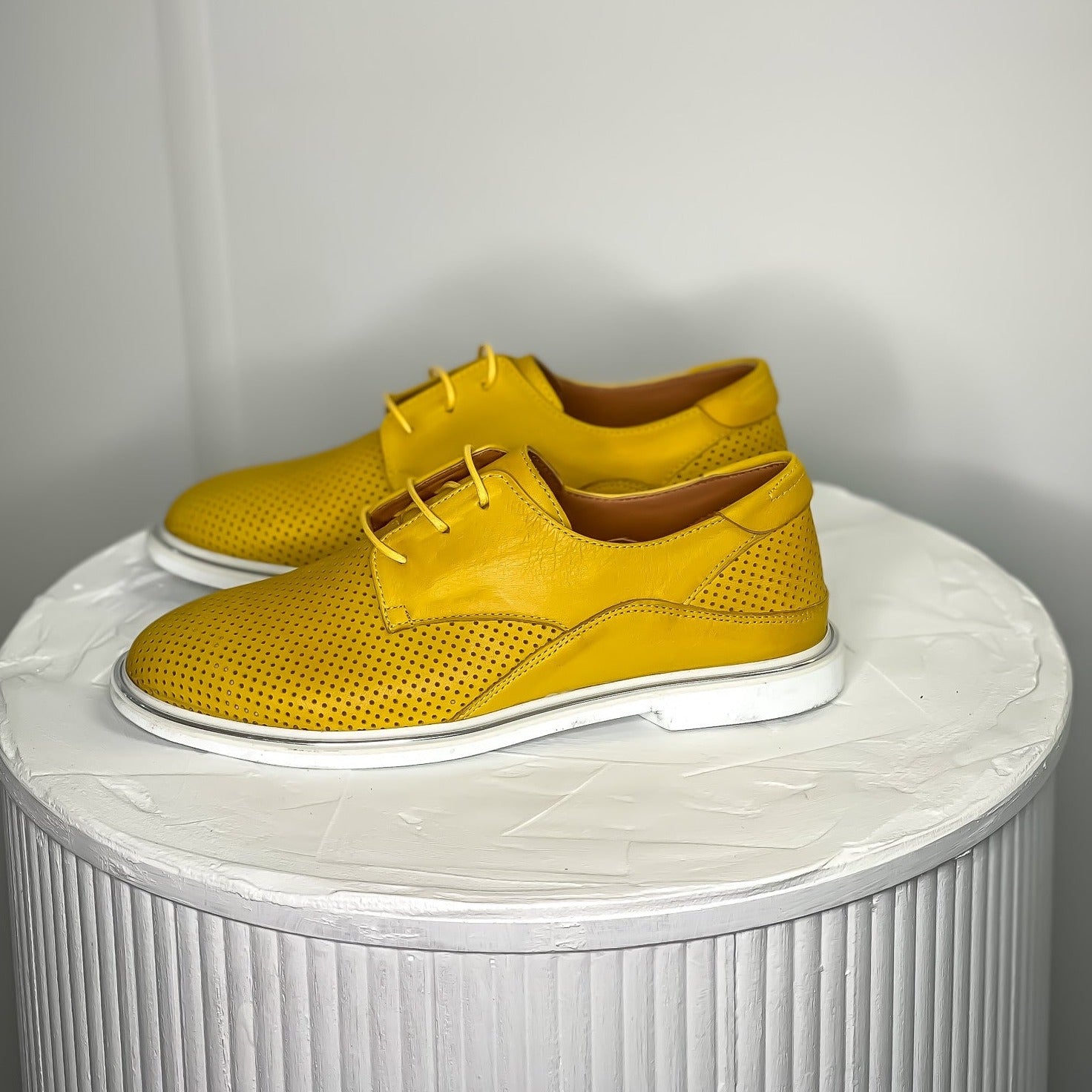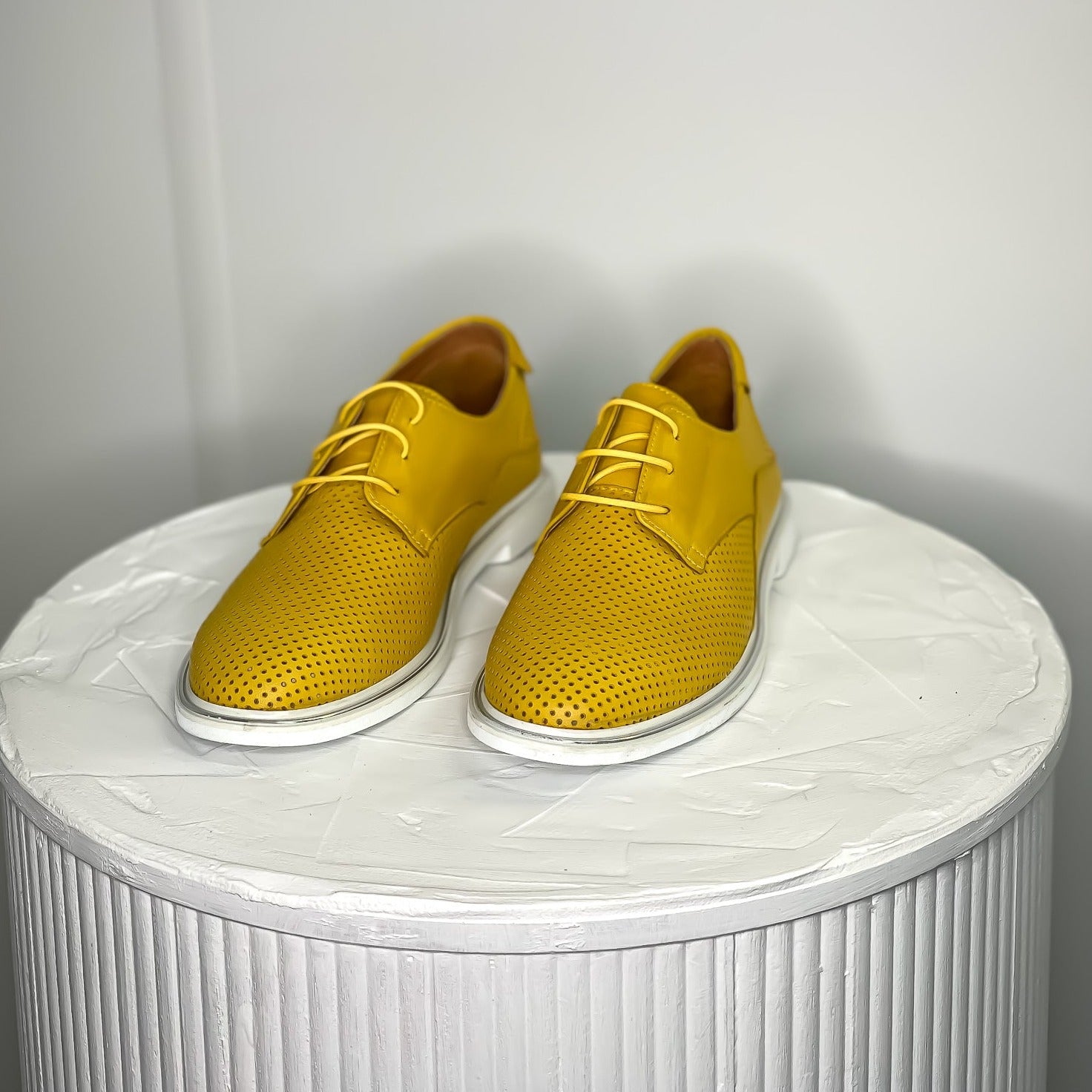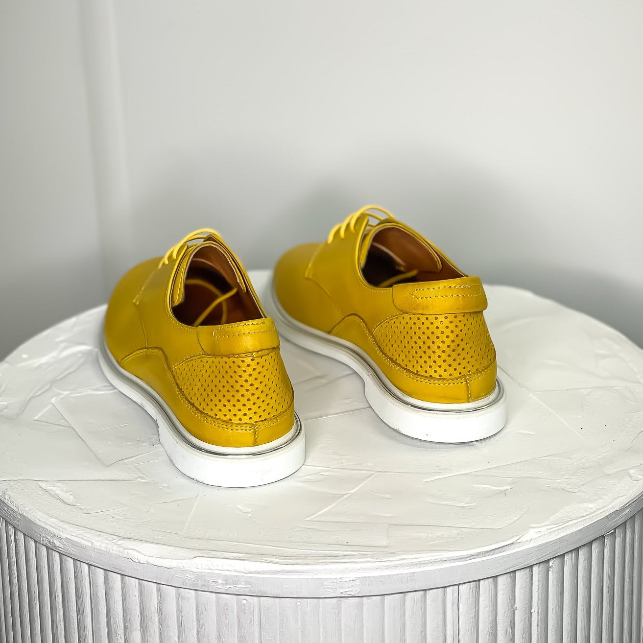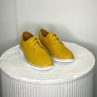 Transform your sneaker game into a style statement with Eve! Whether you're feeling adventurous or laid back, you'll stand out in its sunny yellow hue and pin punched detailing. Plus, lace-up for some fun - all day, every day. Shoe-la-la!