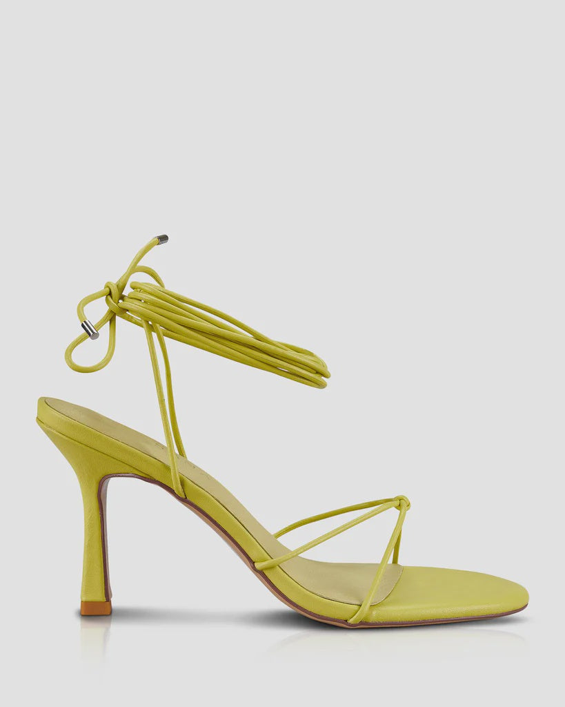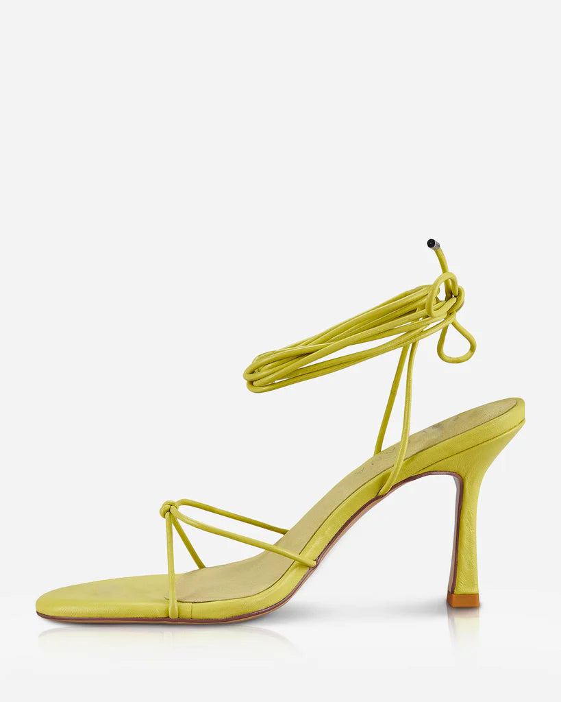 The Honey heel is a delicate stiletto style reimagined with a feminine fluted heel and elongated square toe sole. Barely there straps of the softest leather delicately secure the front of the foot before extending upwards to wrap around the ankle or up the calf.