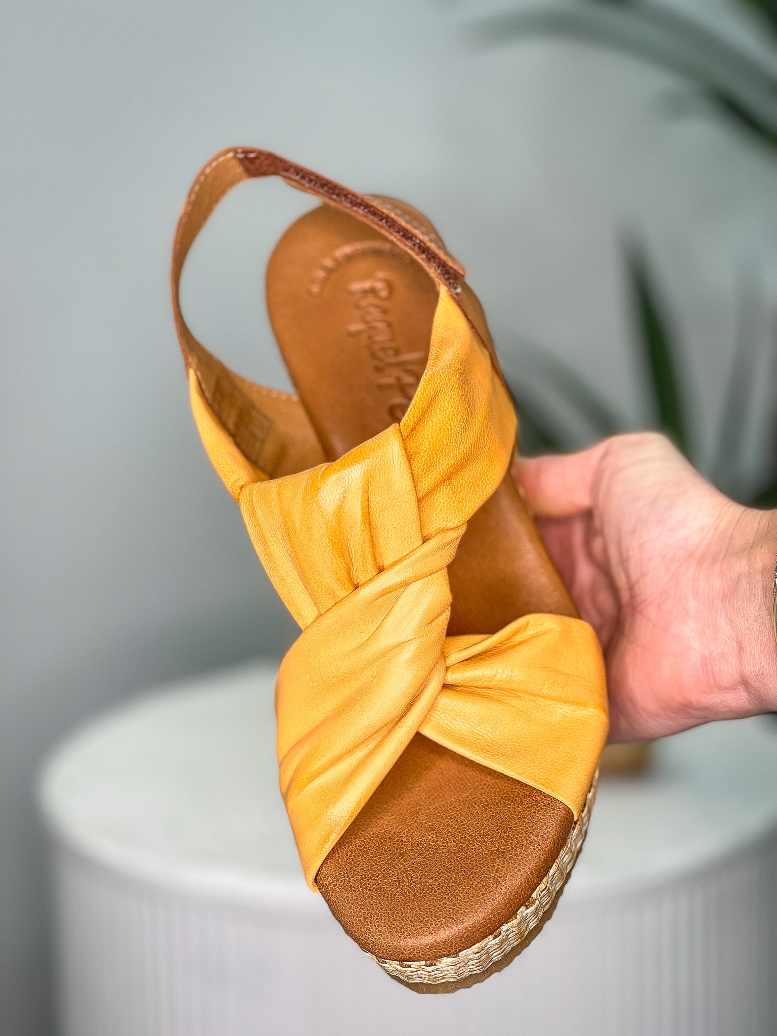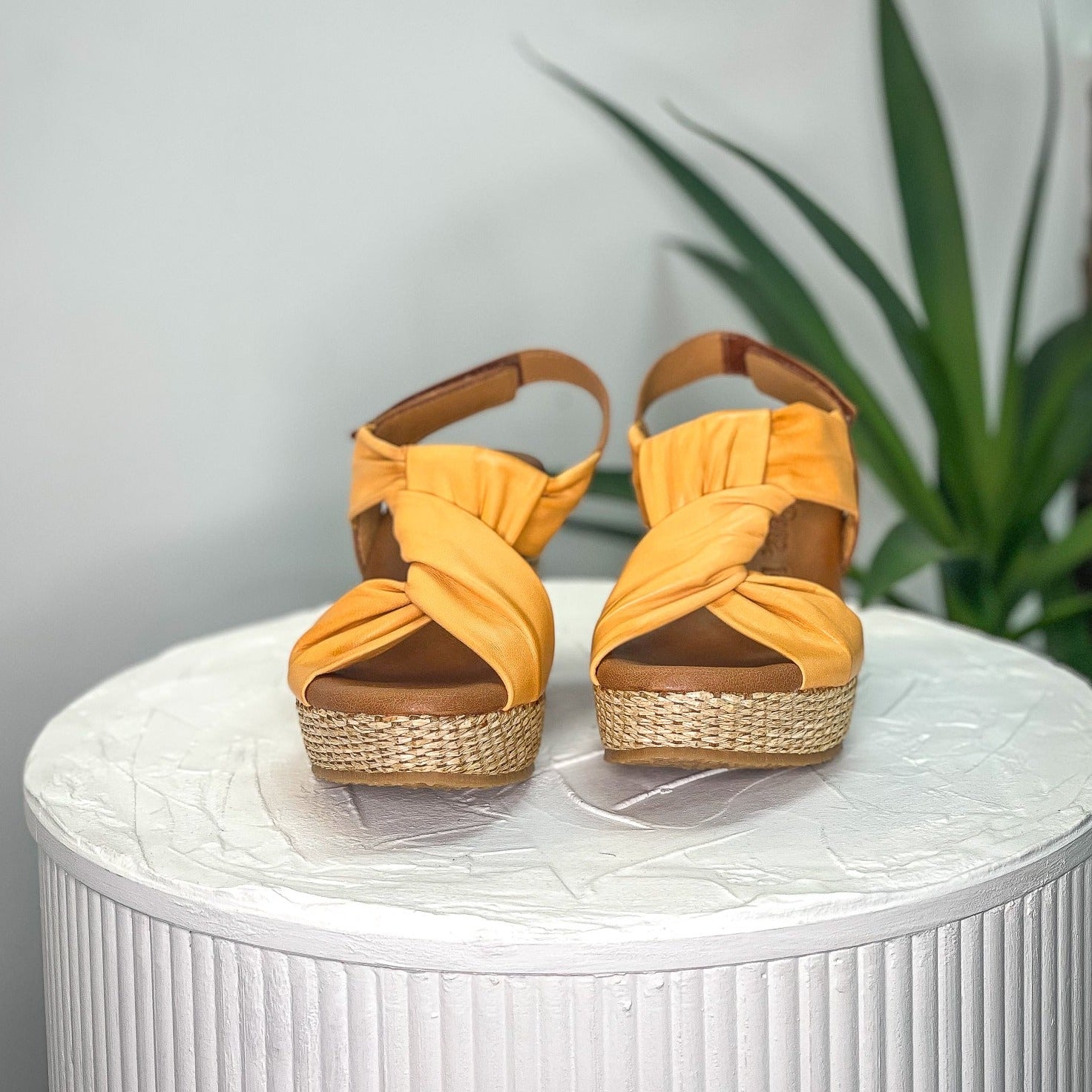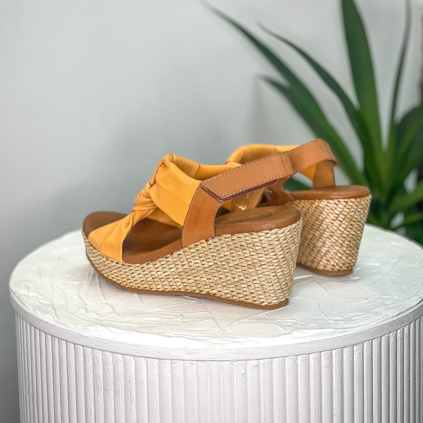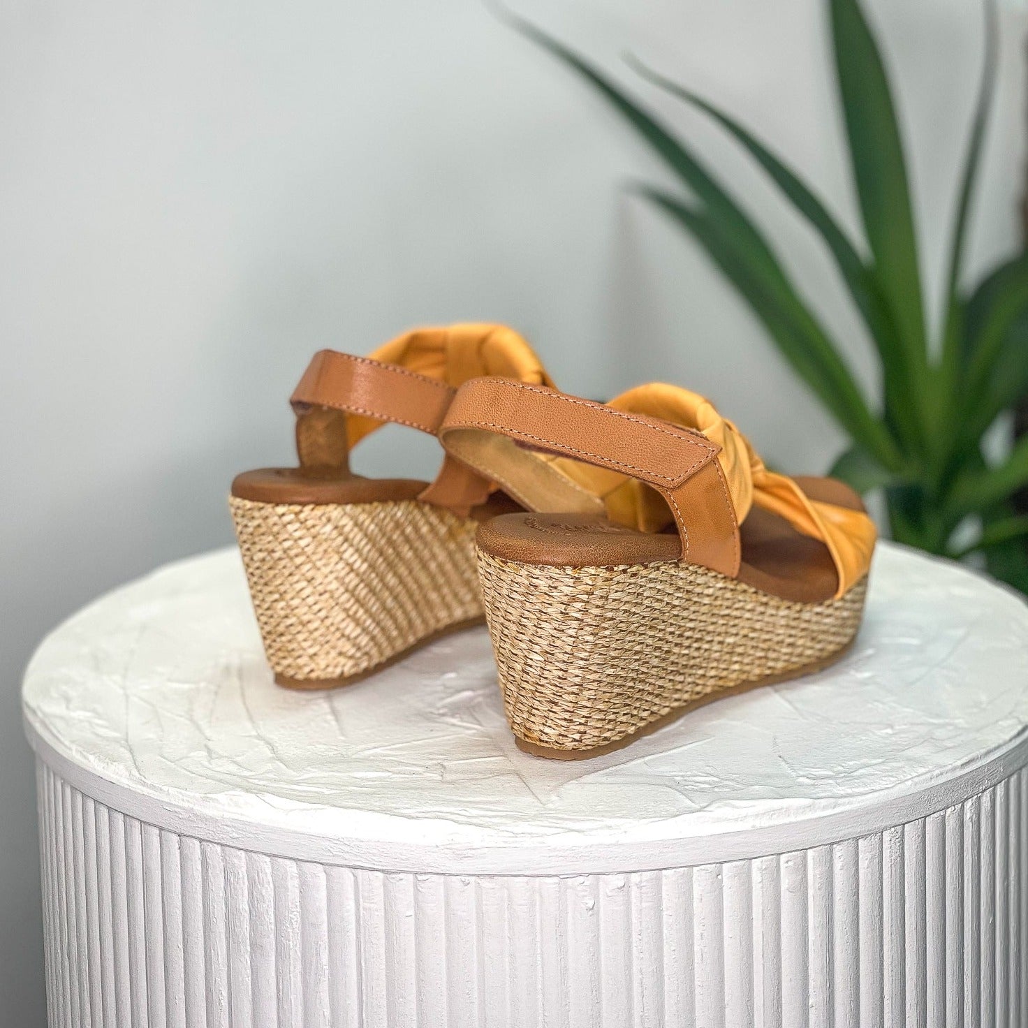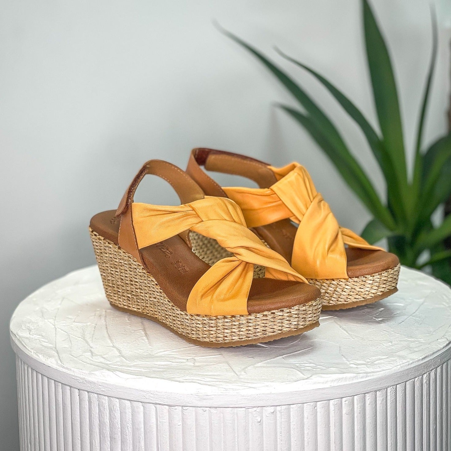 Now you can enjoy comfort in every step with the Idus summer wedge - the stylish, mustard-coloured, soft leather upper is light to wear and is complimented by the espadrille look that is typically European.