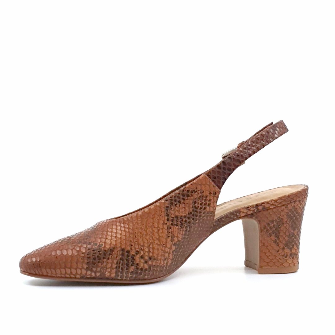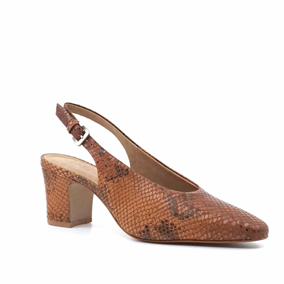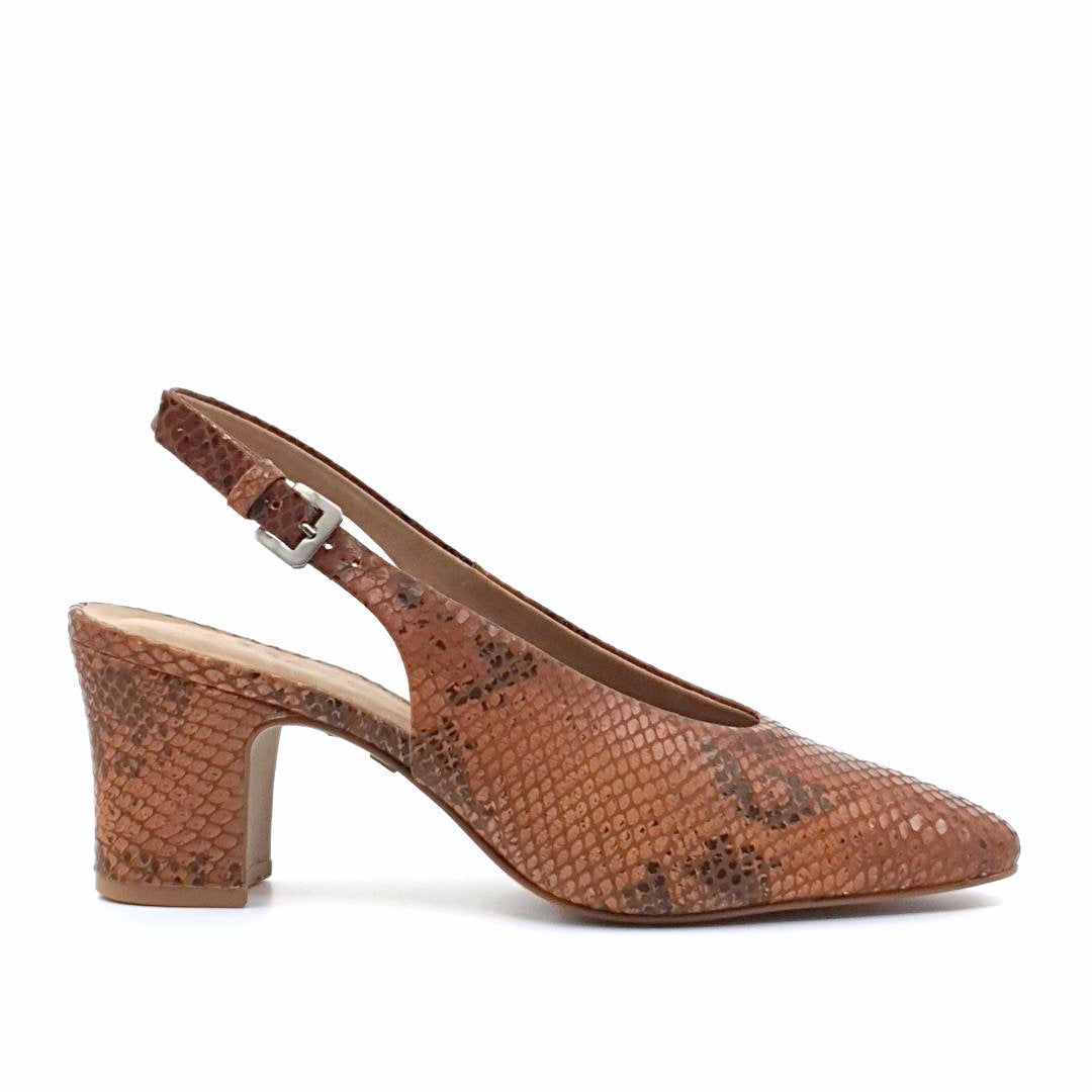 Step out in style with Jaxton Heel! This eye-catching close-toed sling back features a sleek snake print design and a low block heel for comfort. Whether you're off to the office or a night out on the town, these fabulous heels will turn heads!