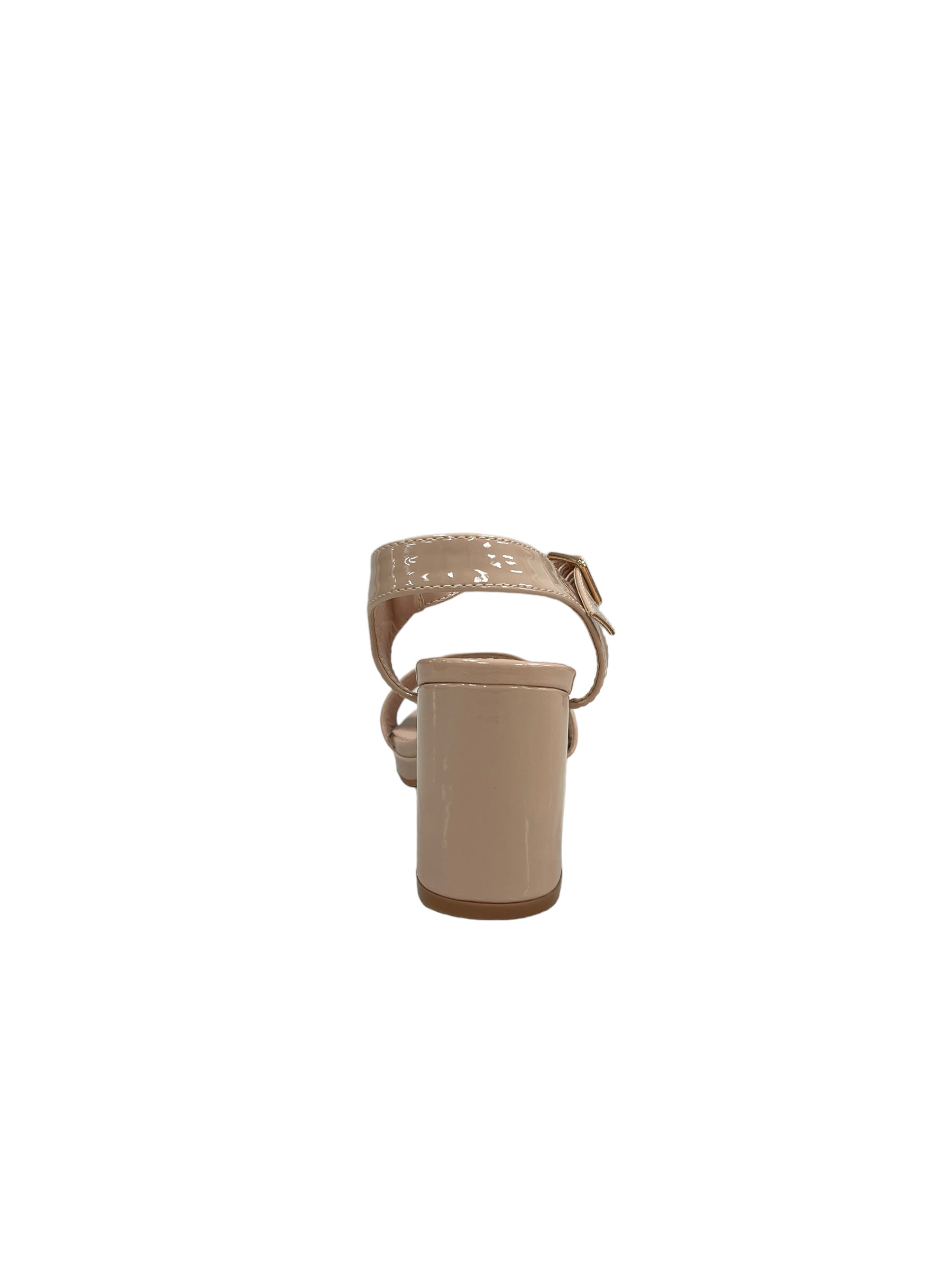 Step out in style with Marti, the perfect must-have heel. With a patent look to give you the extra oomph, and a nude shade to go with any outfit, this block heel will match any mood. Get ready to strut your stuff!