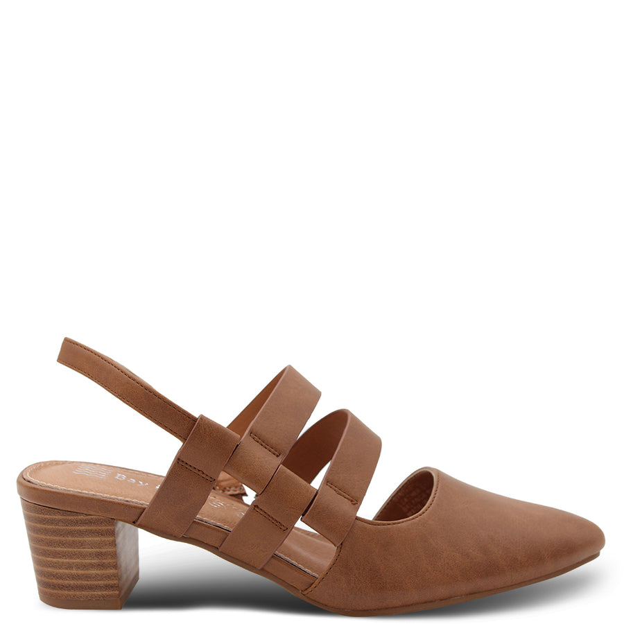 Bay Lane Footwear Mercer is a low block heel with twin wide straps and sling back heel strap. A simple design that can work for many different occasions, something Bay Lane Footwear designs are known for.