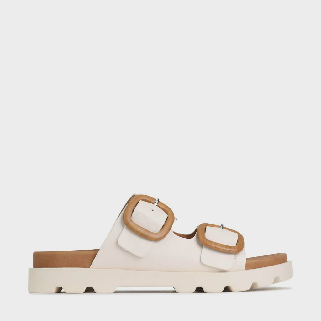 NILI sandals blend comfort and elegance to create the perfect summer shoe. Crafted with luxurious Cashmere or Blanco leather and functional wooden buckles, these elegant flat slides have a distinct square toe silhouette and comfortable double straps. Perfect for capturing the sophistication of summer.