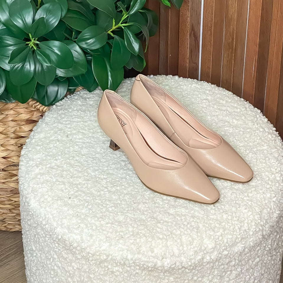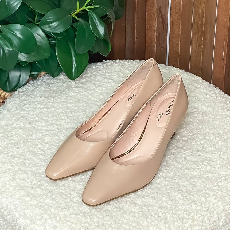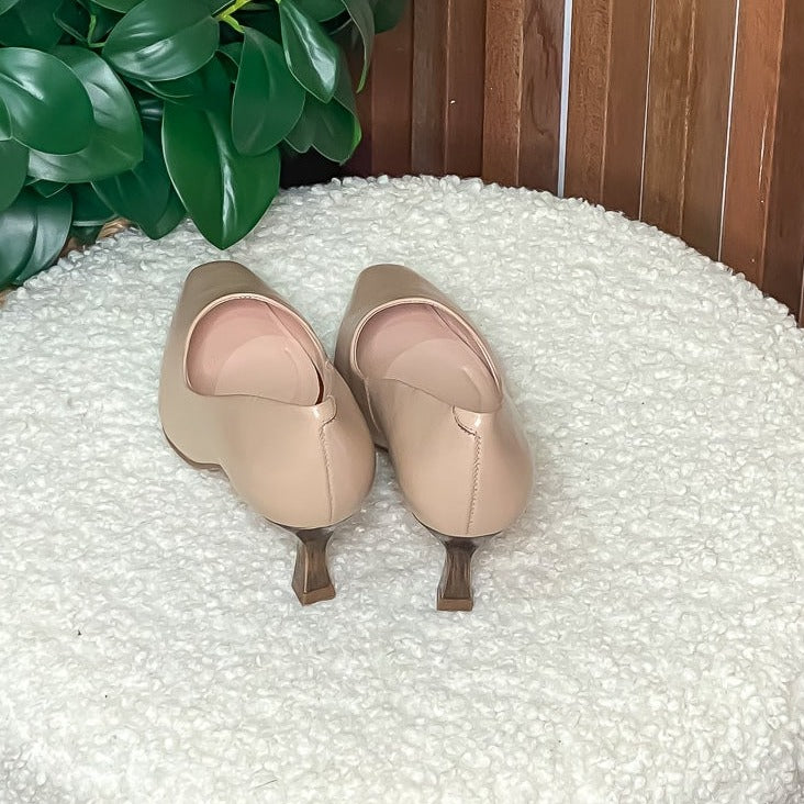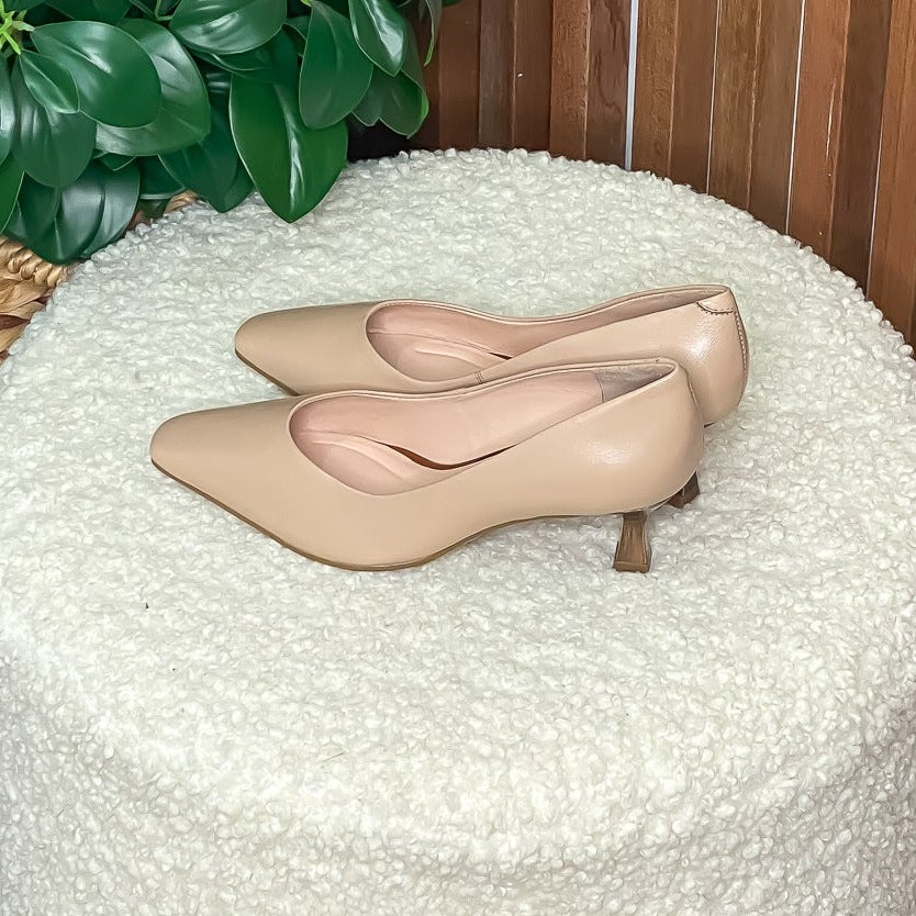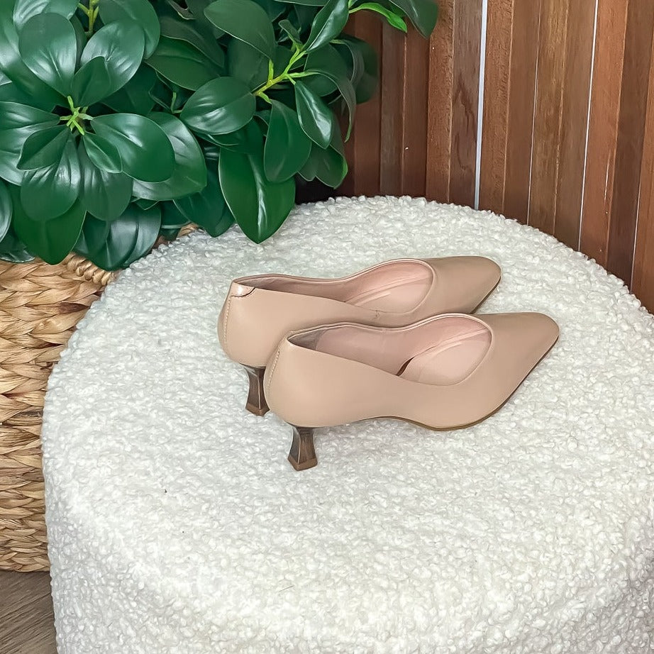 Description: The ultimate classic work heel. With a low heel and rounded at toes, this heel brings the ultimate comfort to your work life. With the perfect neutral tone and dressy heel, your wardrobe is sure to brighten up with this litten number.