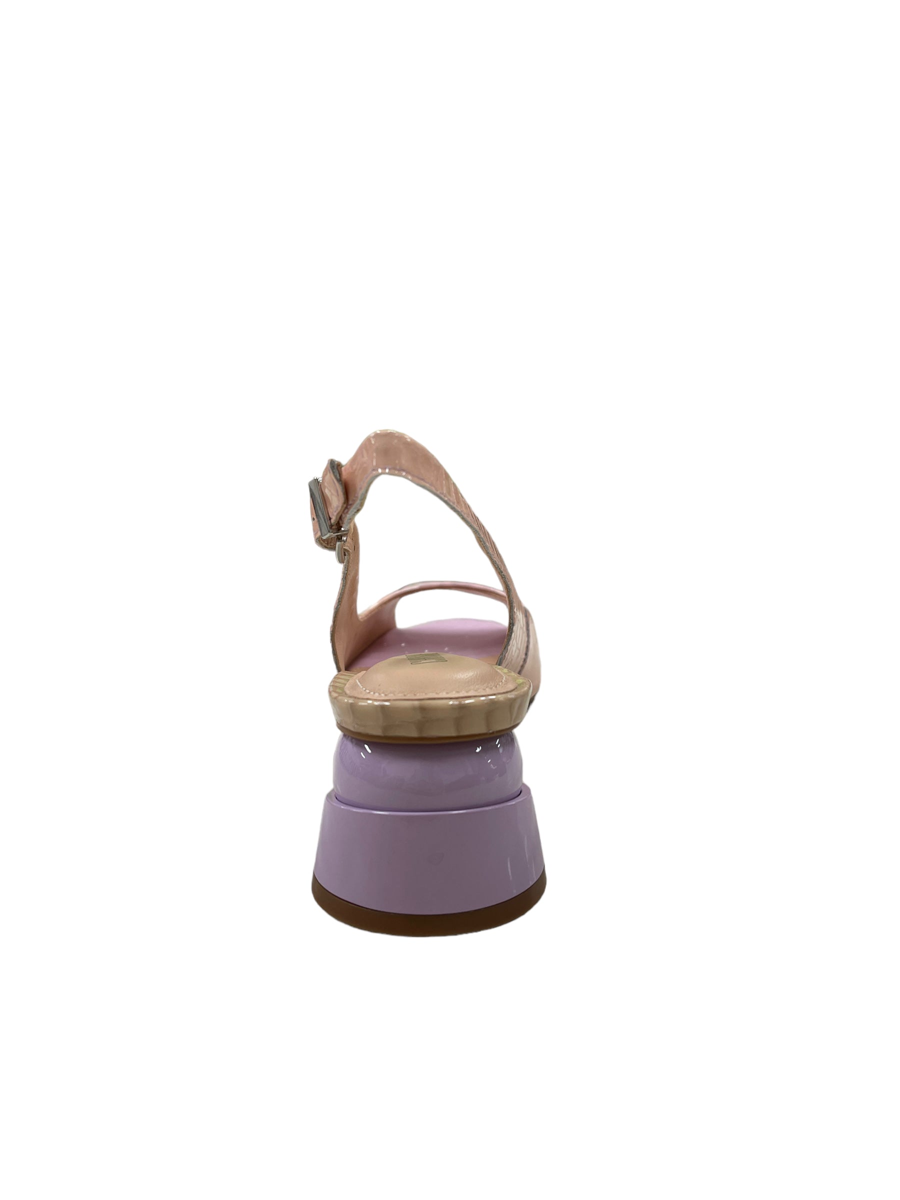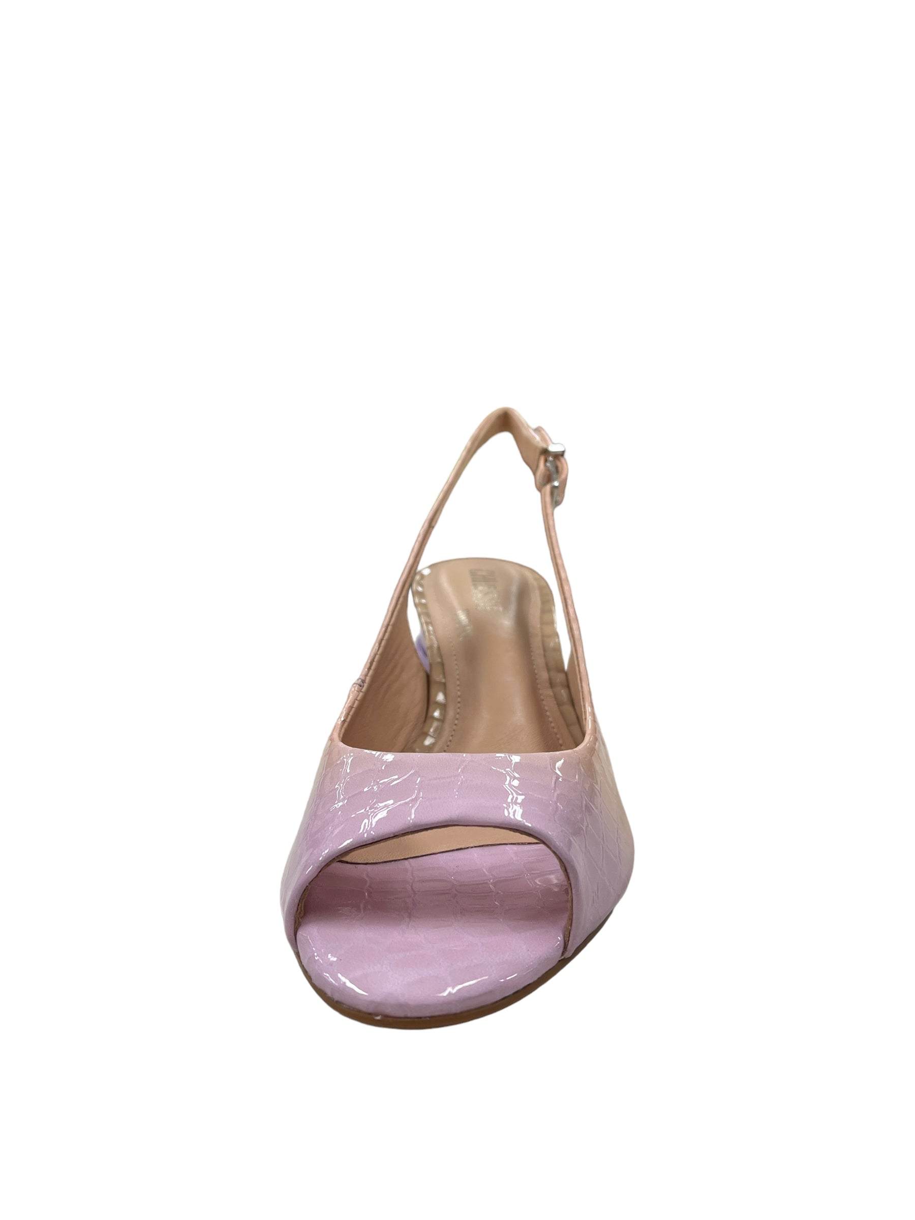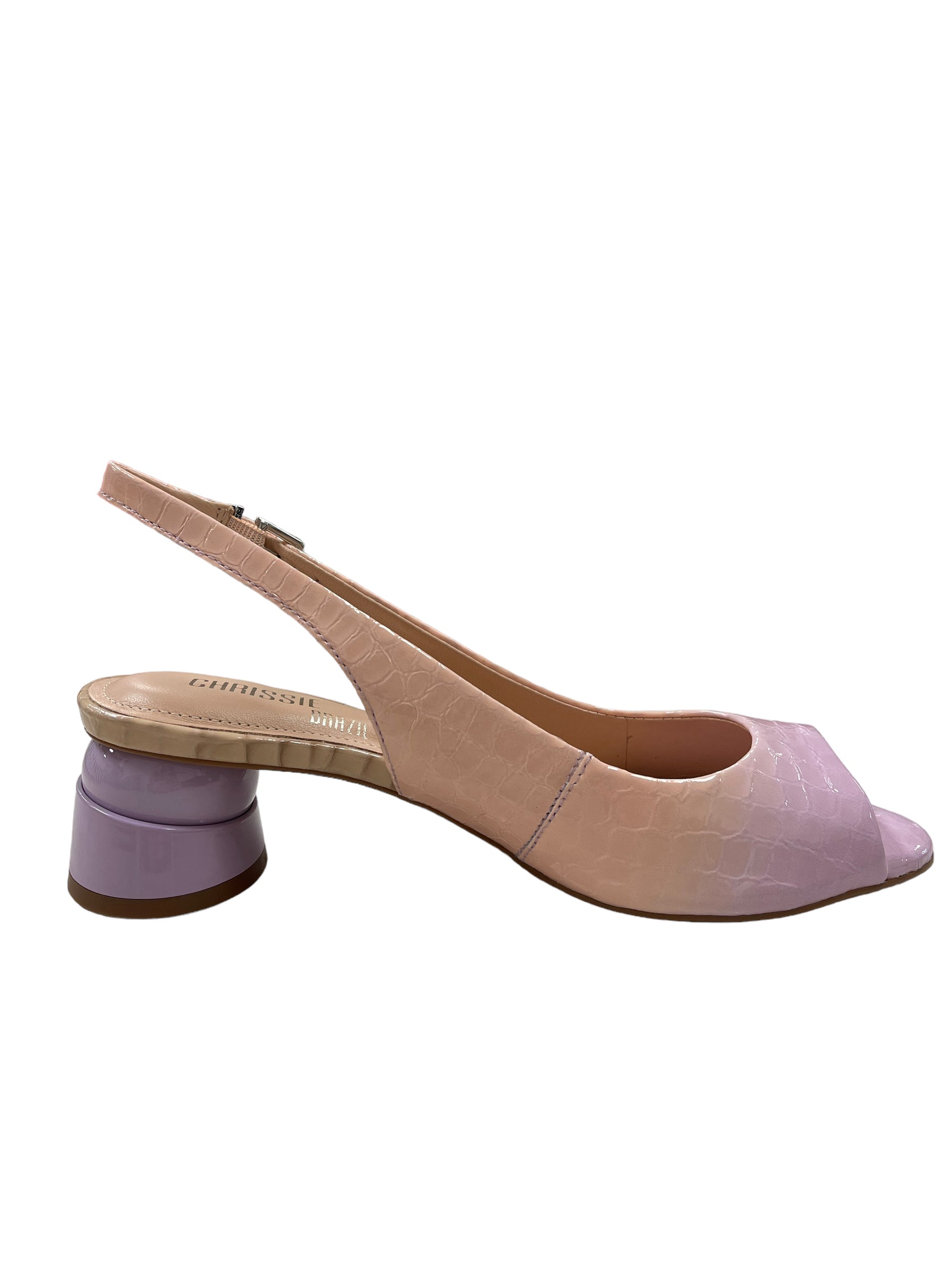 Take your style to new heights with Ruby! This daring patent croc heel combines a fierce ombre tone of lilac and nude, peep toe, and a block statement barrel heel for a truly daring look. Take the plunge and make a statement today!