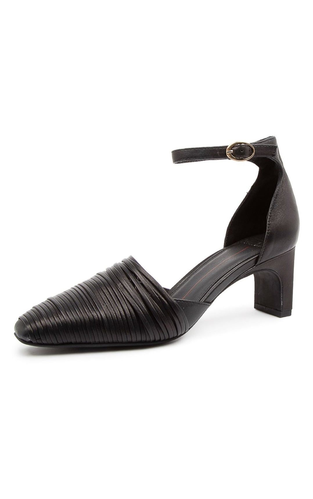 With an on-trend rectangular heel and tapered toe, SHIBO by Mollini can take an outfit from work week to weekend wedding. The unique strappy toe adds a textural touch, secured by a buckled strap. Pair with a denim skirt and band tee or flowing floral maxi dress and matching clutch.