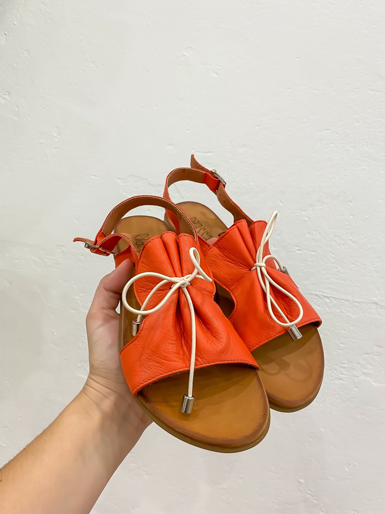 Step out in style with these Tezin Sandals! Crafted with Turkish leather, these sandals feature a white contrast elastic tie up and ruffle detail for a unique look that'll have heads turning. With their playful combination of fun and fashion, these sandals are sure to become your go-to look. Be the life of the party and in a pair of Tezin Sandals.