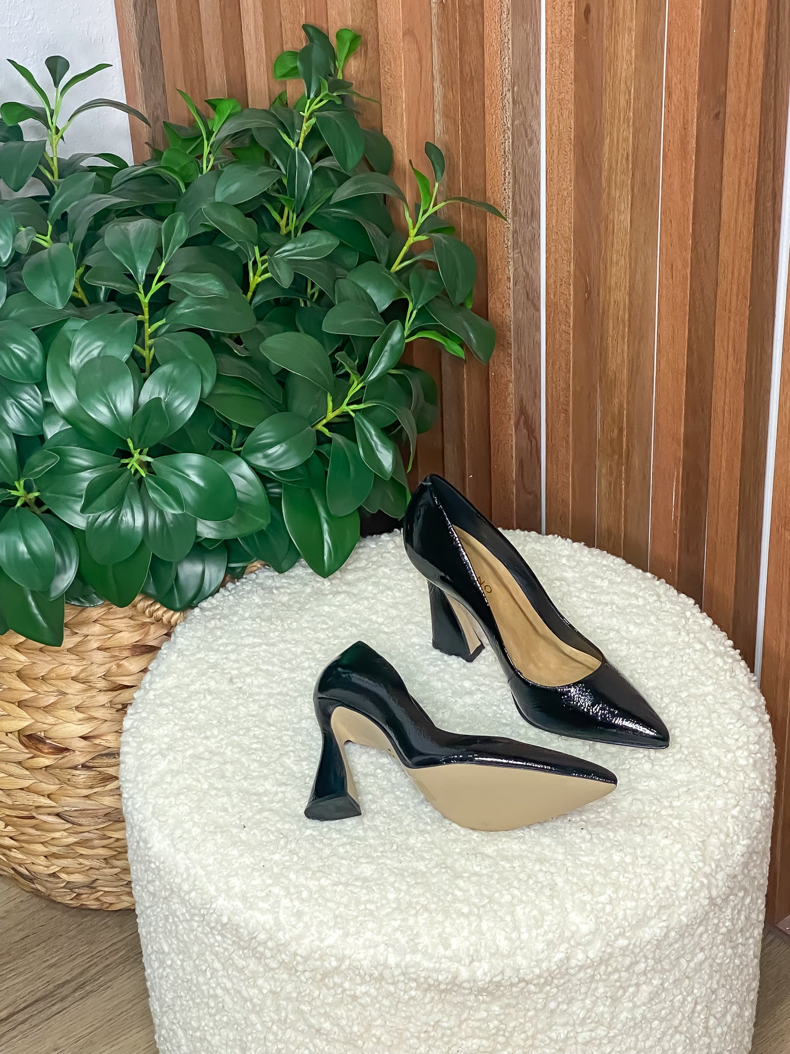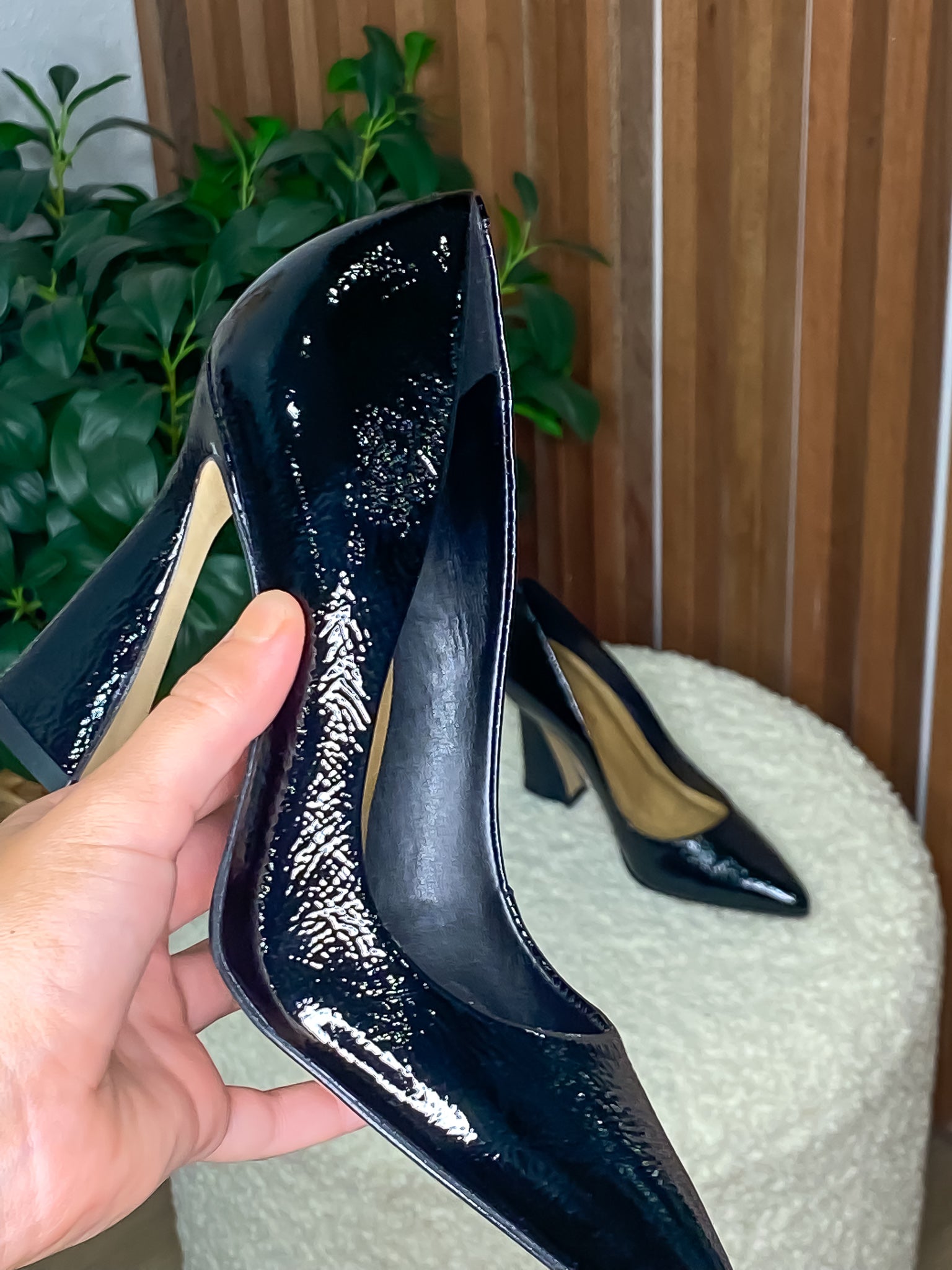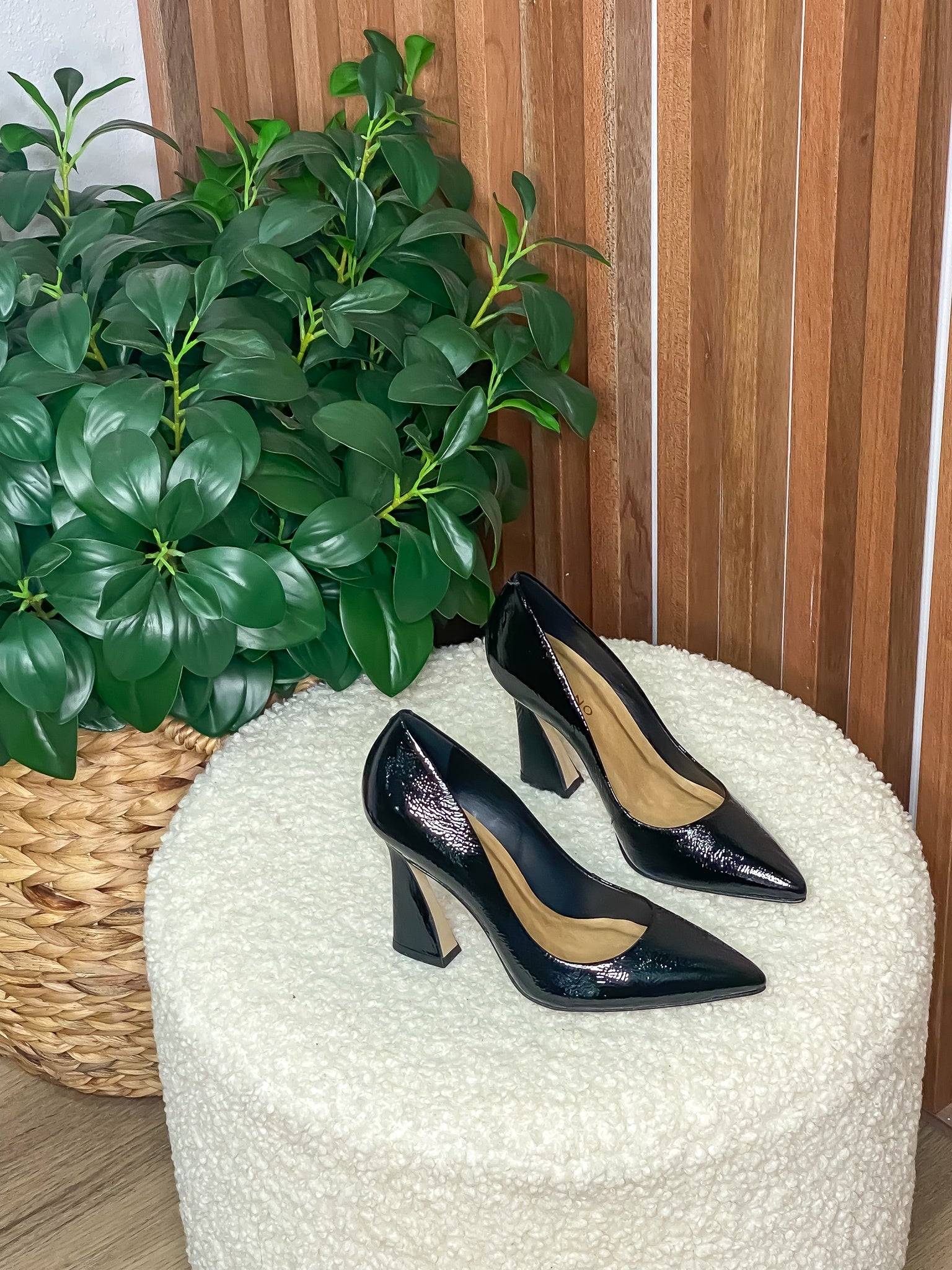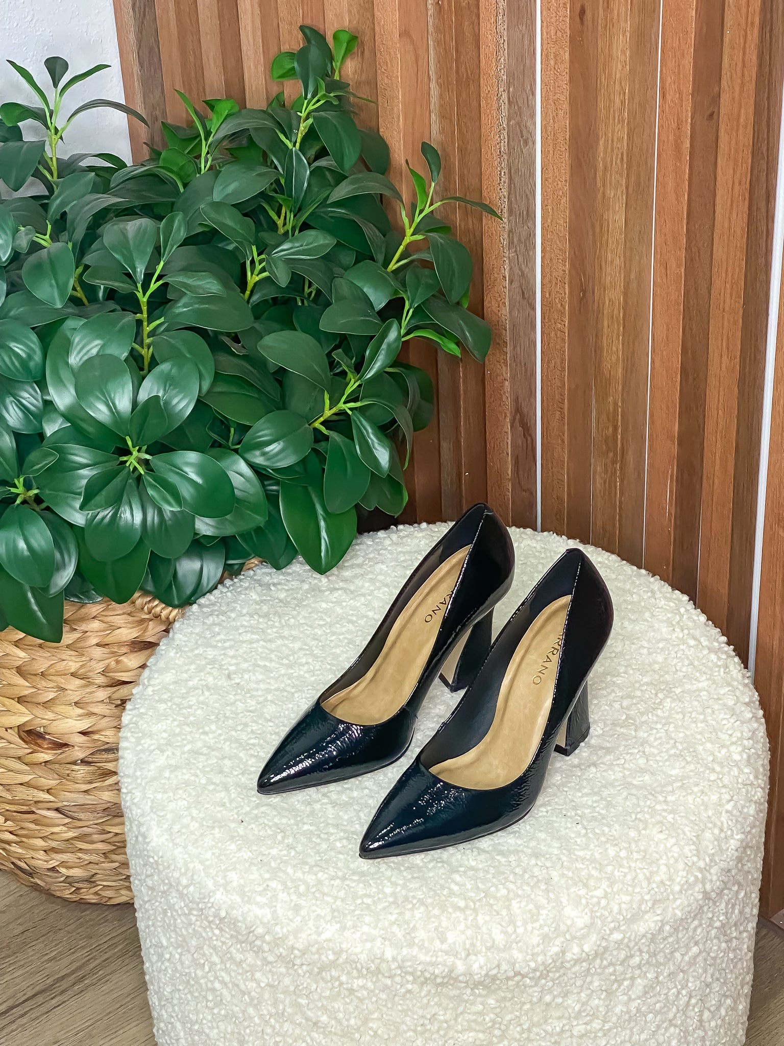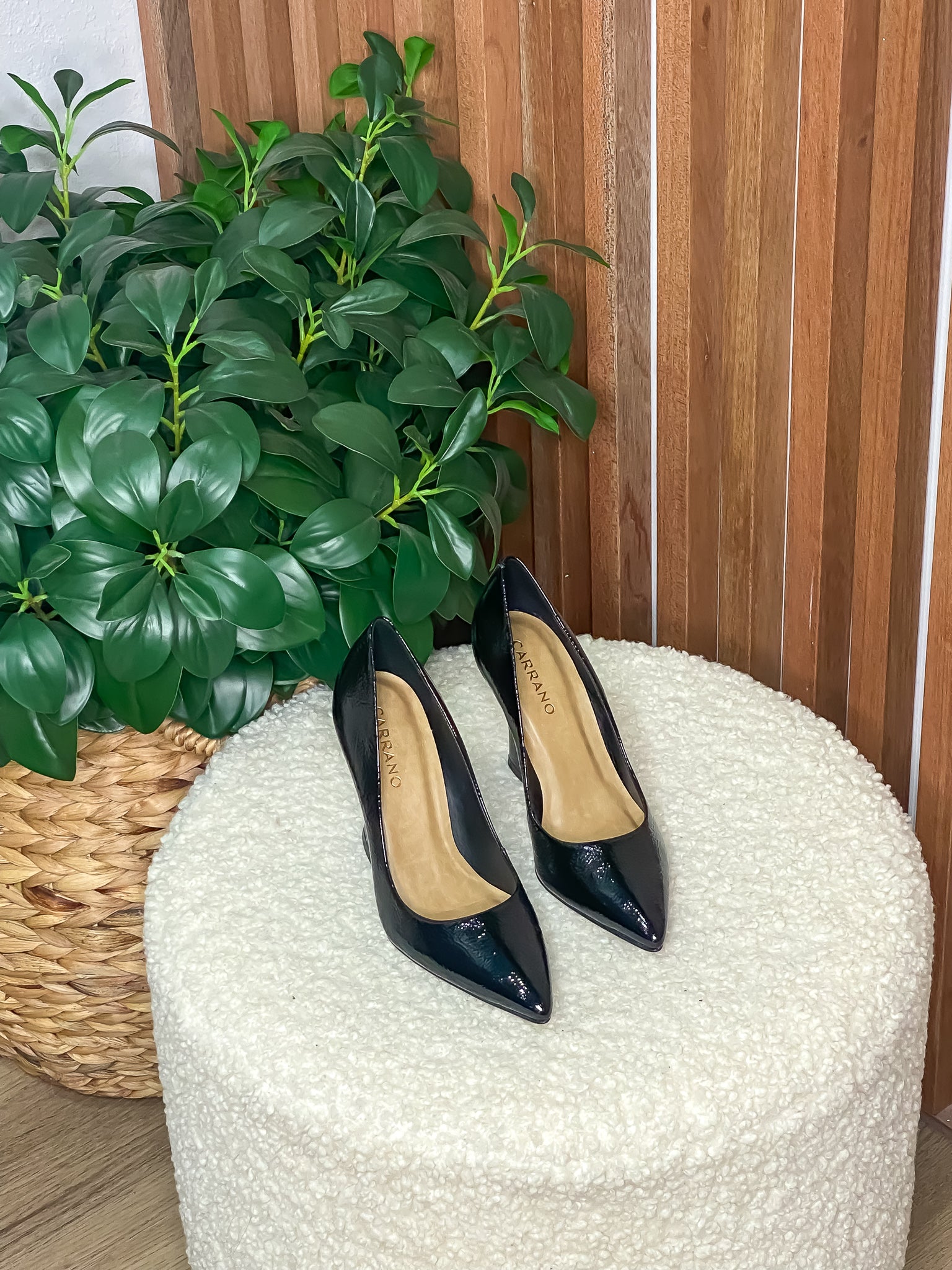 Black to basics in Carrano's Verniz Heel with a fun crinkle patent flinish. It gives that added flair and modern feel to the heel.