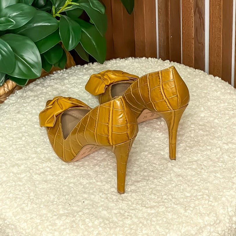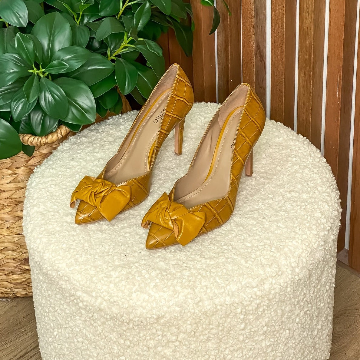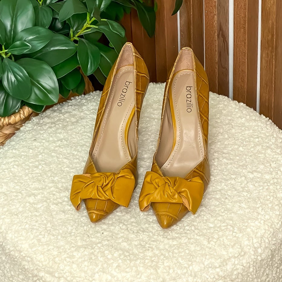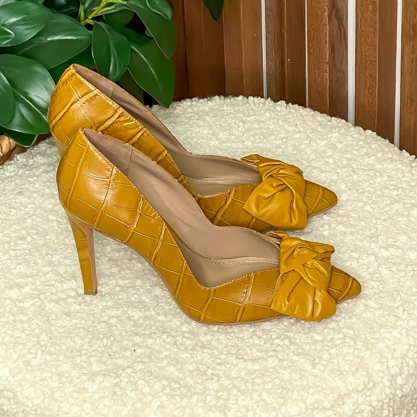 Capture the limelight with the Zayd Heel. Crafted with sleek stiletto and seductive croc print in a refined mustard hue, these Brazilian heels are a show-stopping statement piece. The 10cm heel exudes elegance and sophistication, while the luxe leather detailing lends an air of exclusivity.