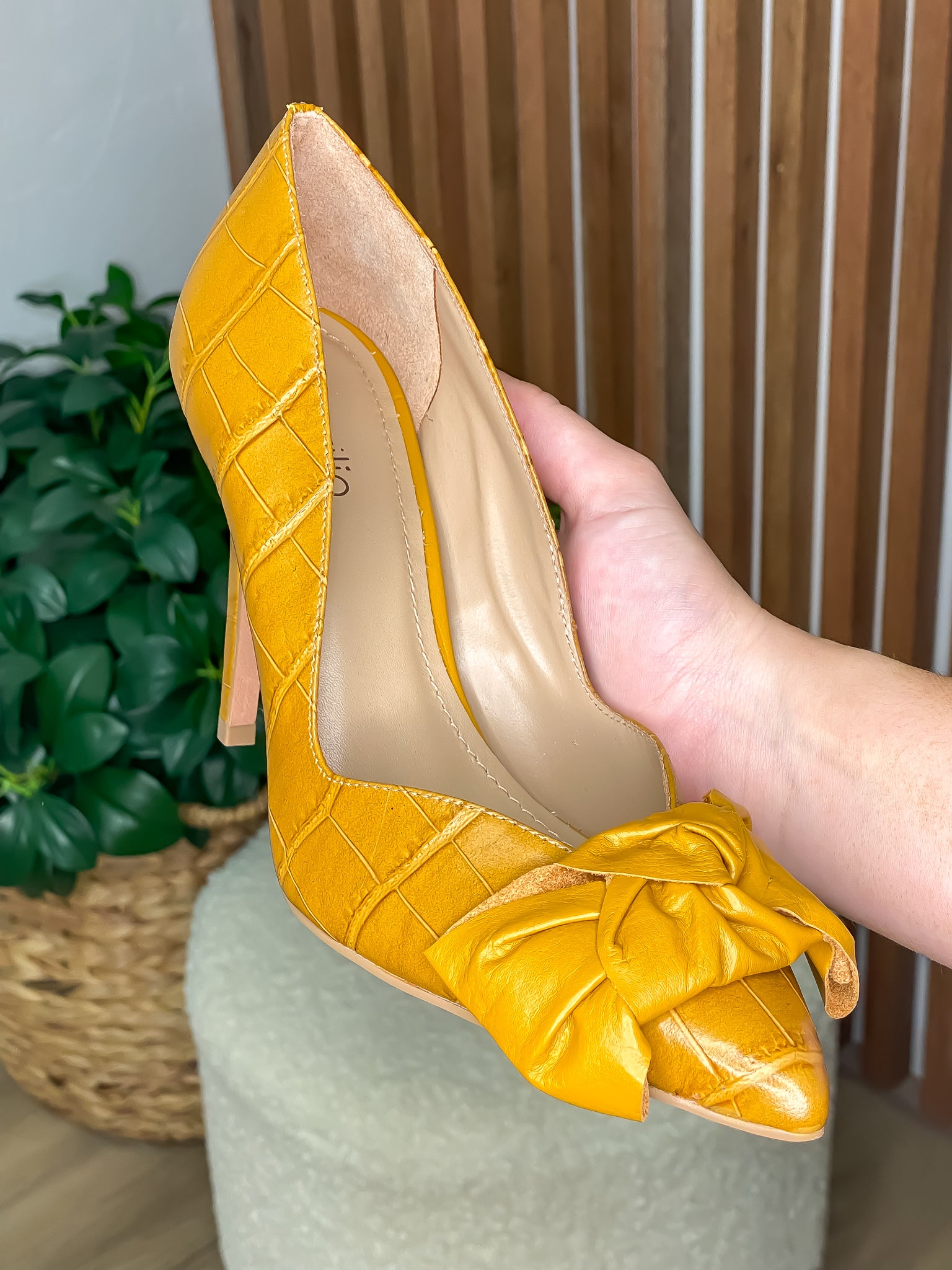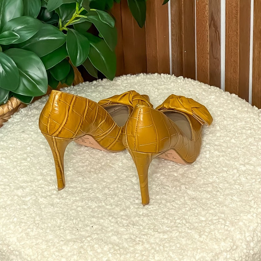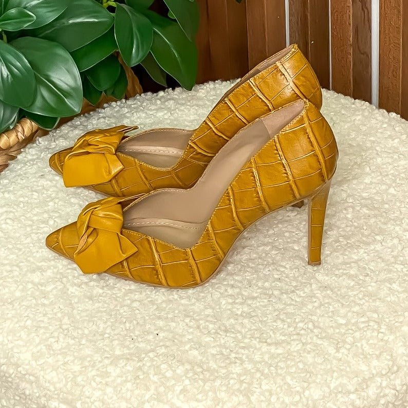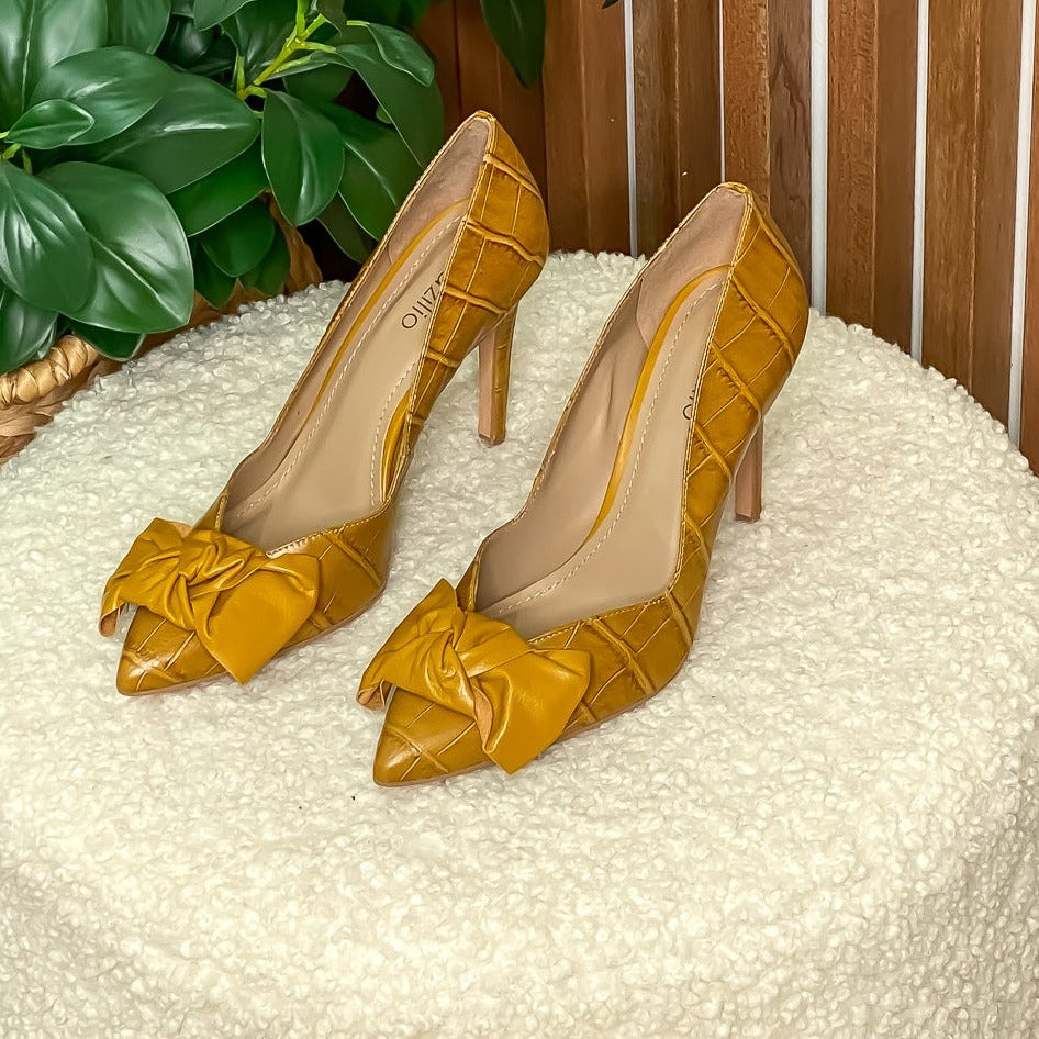 Capture the limelight with the Zayd Heel. Crafted with sleek stiletto and seductive croc print in a refined mustard hue, these Brazilian heels are a show-stopping statement piece. The 10cm heel exudes elegance and sophistication, while the luxe leather detailing lends an air of exclusivity.
