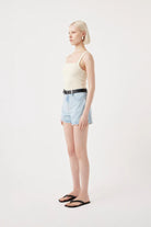 Our quintessential denim staple. A super flattering high-rise cut that hugs through the waist and relaxes through the thigh. Crafted in a premium rigid denim.