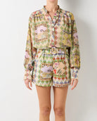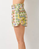 The Riviera Short is a chic and playful addition to your warm-weather wardrobe. Featuring a tailored fit with a belted waist, these high-rise shorts provide both structure and comfort. The vibrant prints, such as "The Aviary," add a touch of personality to the design, making them perfect for adding a pop of color to any outfit. With their versatile style, the Riviera Short can be easily paired with a matching top for a coordinated look or dressed down with a simple tee for a more casual vibe.