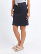 Comfort and style with this little denim skirt. With a super stretchy fit and draw cord for cinching in at the waist, this is the best little denim skirt you'll ever wear!