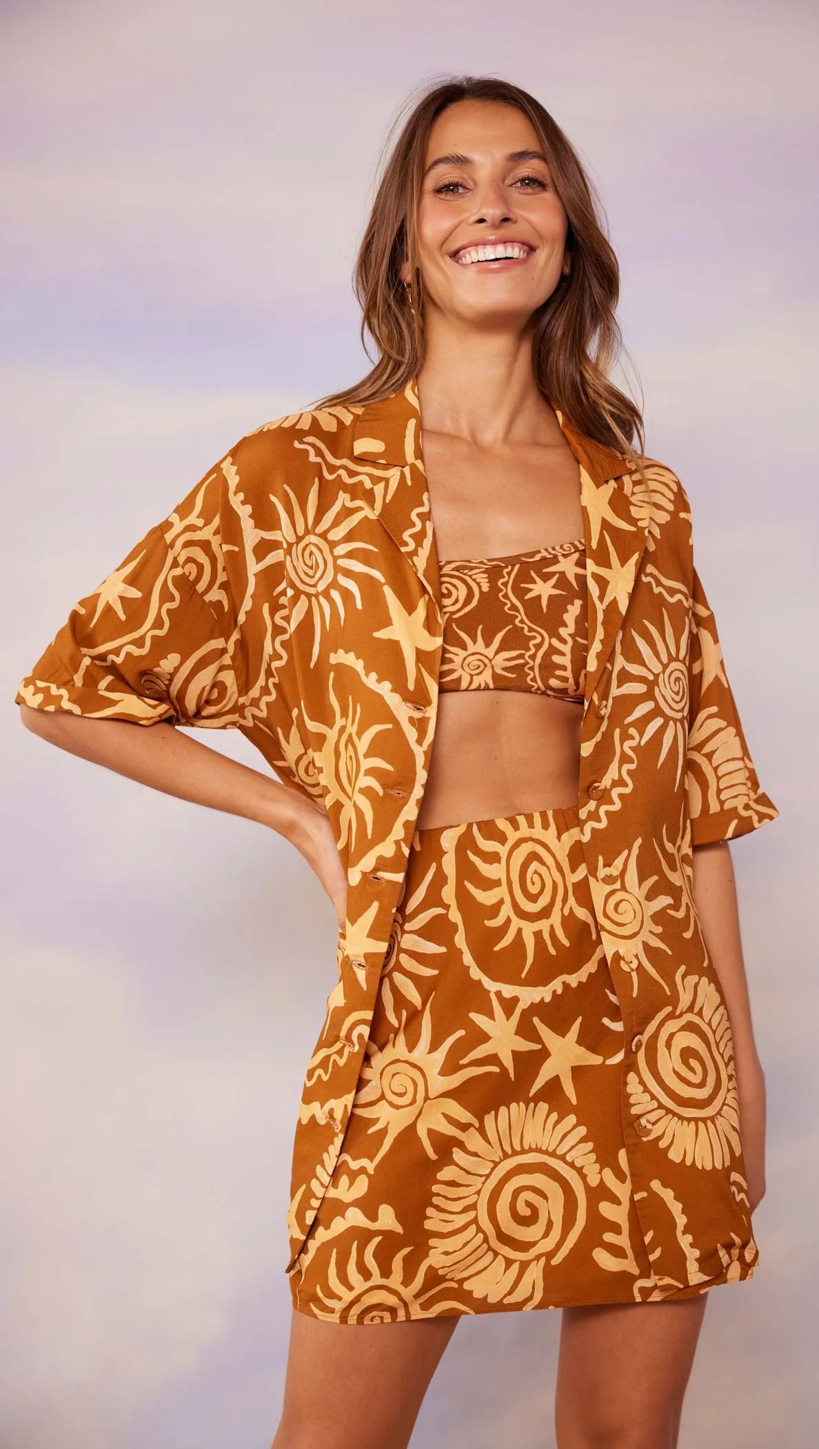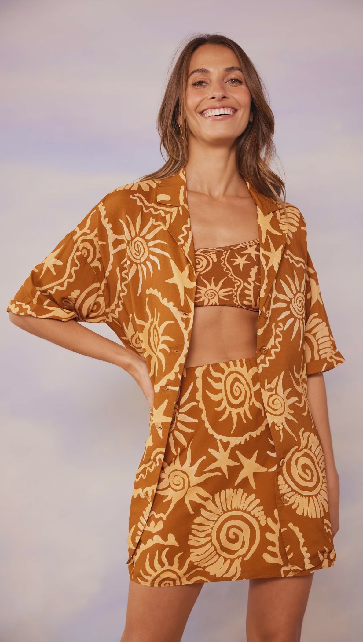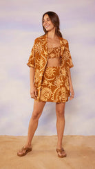 The Astrid Mini Skirt will complete your holiday wardrobe. Pair with our matching Astrid Shirt for the set of your dreams or use as a cover up with our Astrid Bikini Top and Bottoms for an easy laid back look by the water.