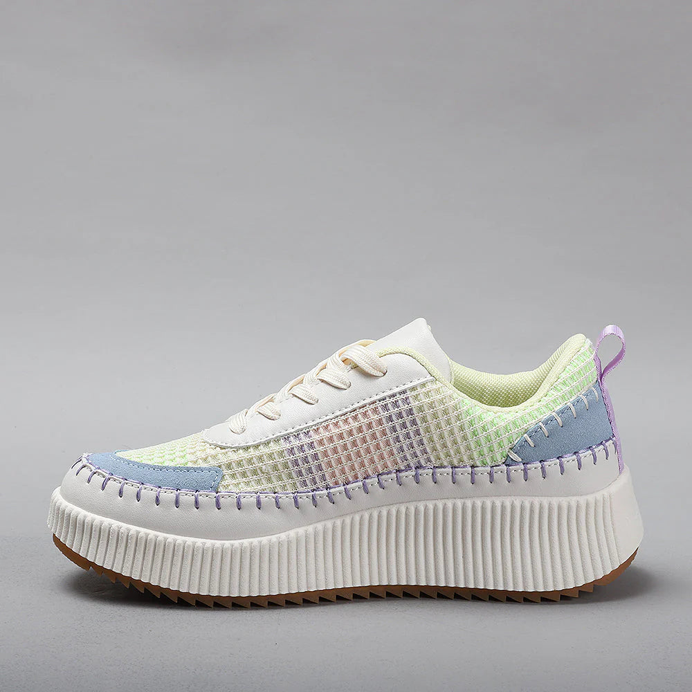 Mintiz Dunk blends style with function, featuring hand-knit mesh, a chunky grip sole for traction, and a lightweight design. Lace-up for a secure fit, accentuated by a chic heel tag. The sneaker's hand-stitched mesh and faux leather body offer sophistication, while its cushioned footbed ensures all-day comfort.
