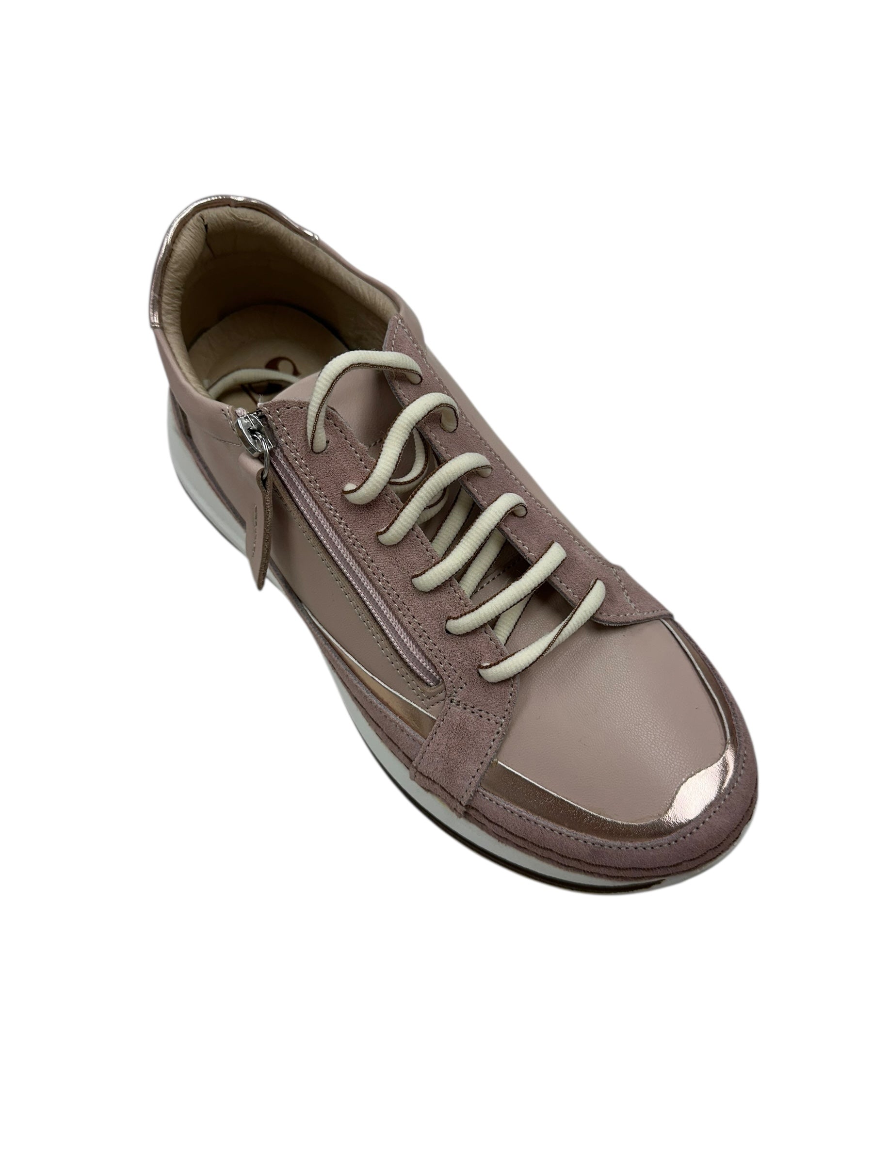 Step into style with the Vogue Sneaker, where pink meets shimmering metallics for a look that turns heads. The clever dual-access design features both a side zipper and laces, so you can slip them on in seconds or lace up for a locked-in fit. Whether you're rushing out the door or want that customized comfort, this sneaker delivers versatility without compromising on edge. Perfect for anyone who refuses to choose between convenience and cool.