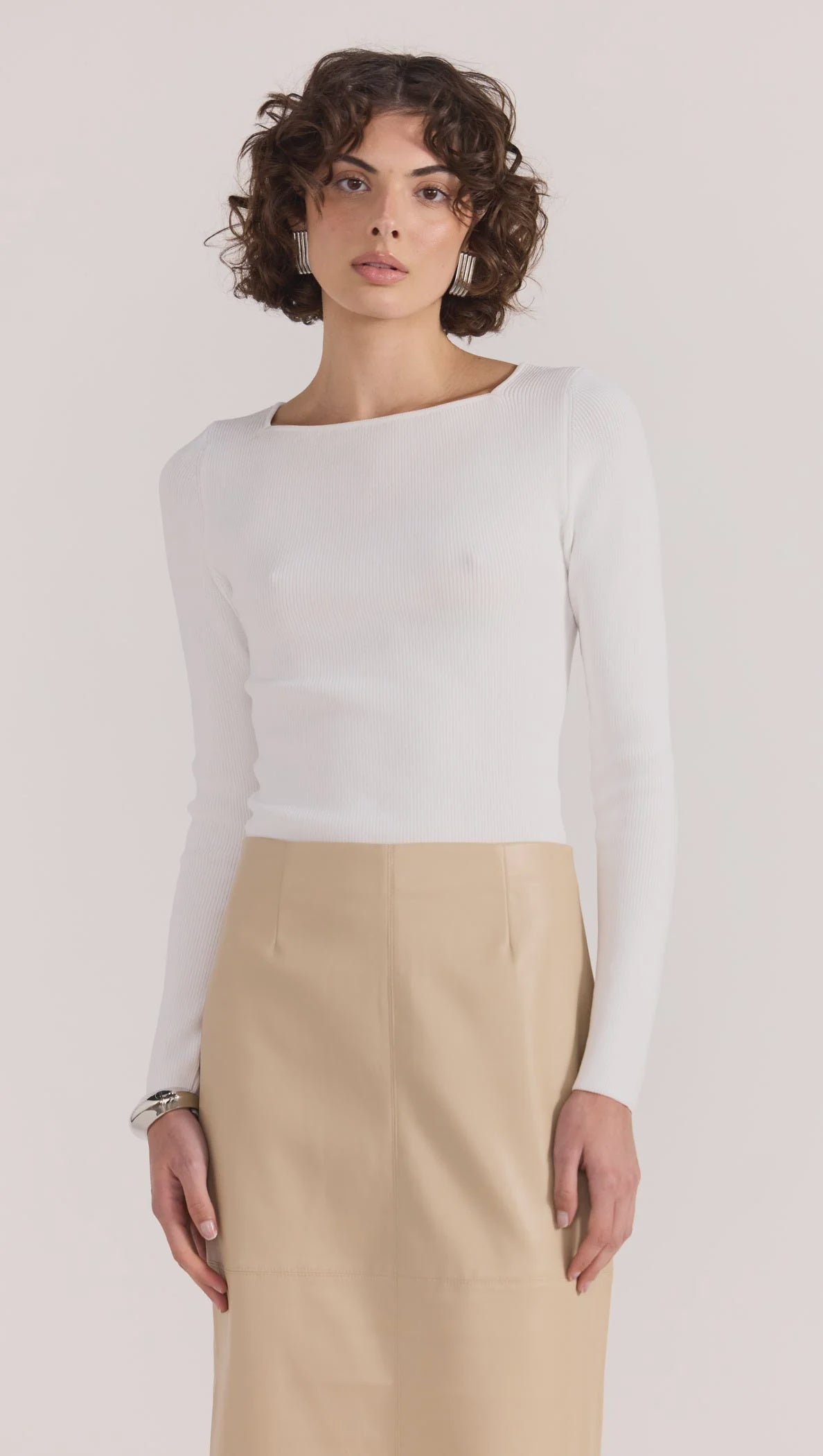 Minimal and versatile, the Nora Knit Top is a refined essential designed for everyday wear. Made from a soft, stretchy fabrication, this long sleeve knit features a flattering square neckline and a fitted silhouette that layers seamlessly under jackets or worn on its own. With its clean lines and structured rib texture, the Nora Top brings elevated simplicity to your core wardrobe.