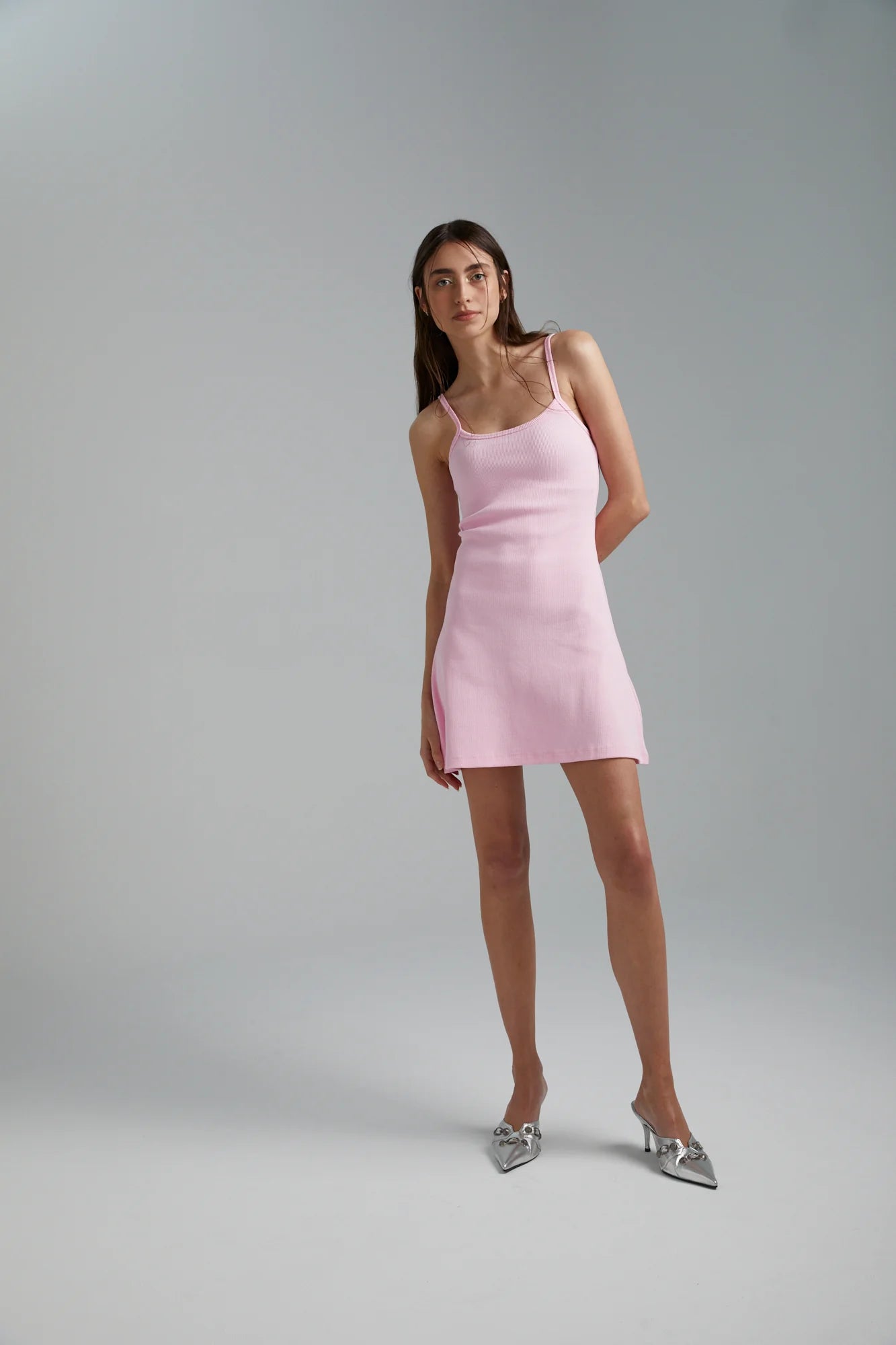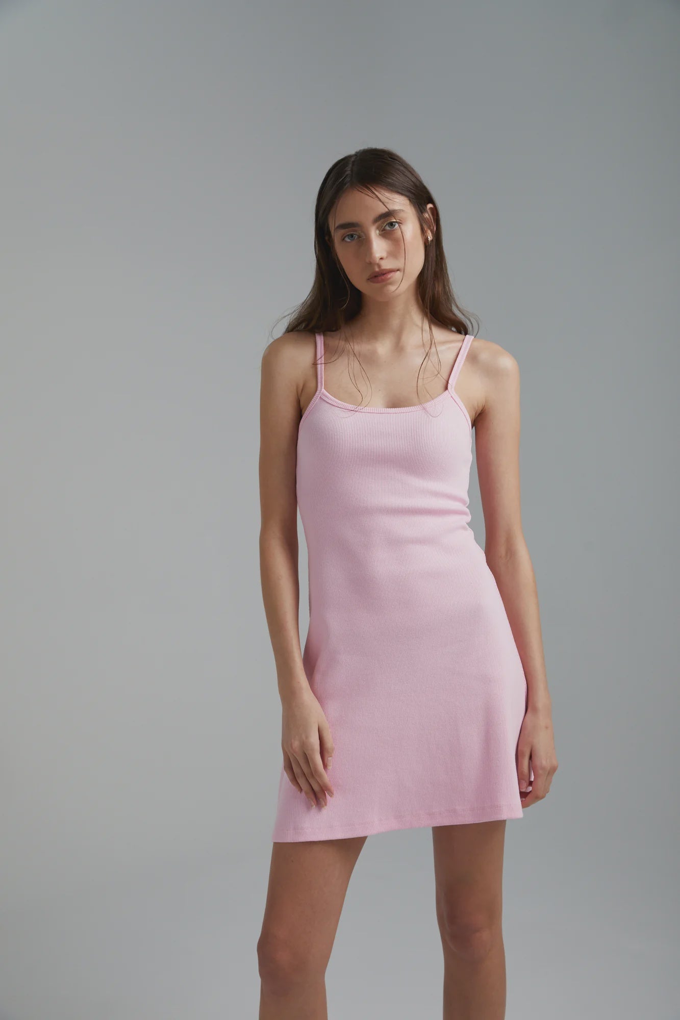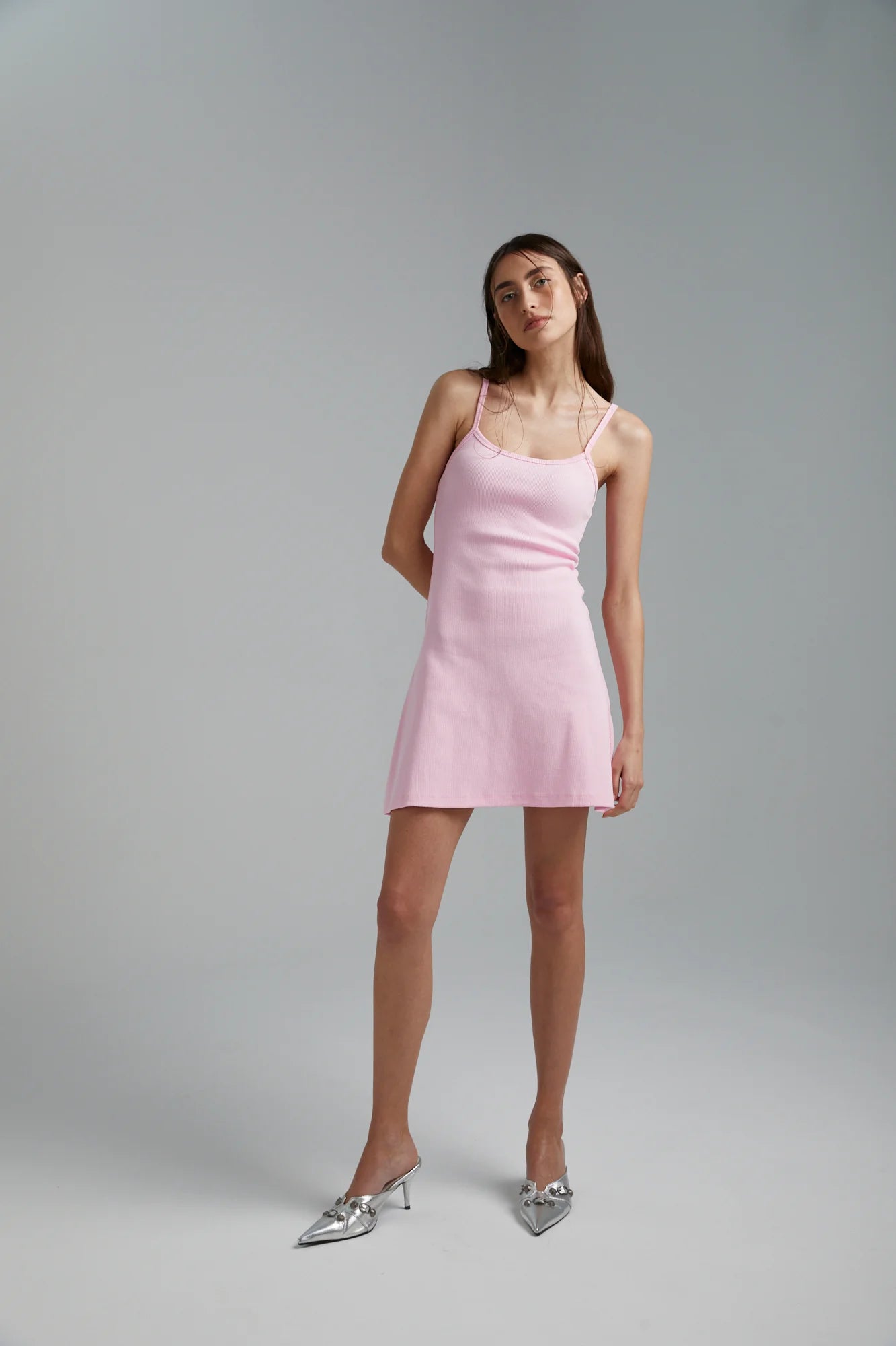 The infamous Summi A-line is back! Cut from form flattering ribbed cotton in feminine pink, this simple dress is every gals dream!