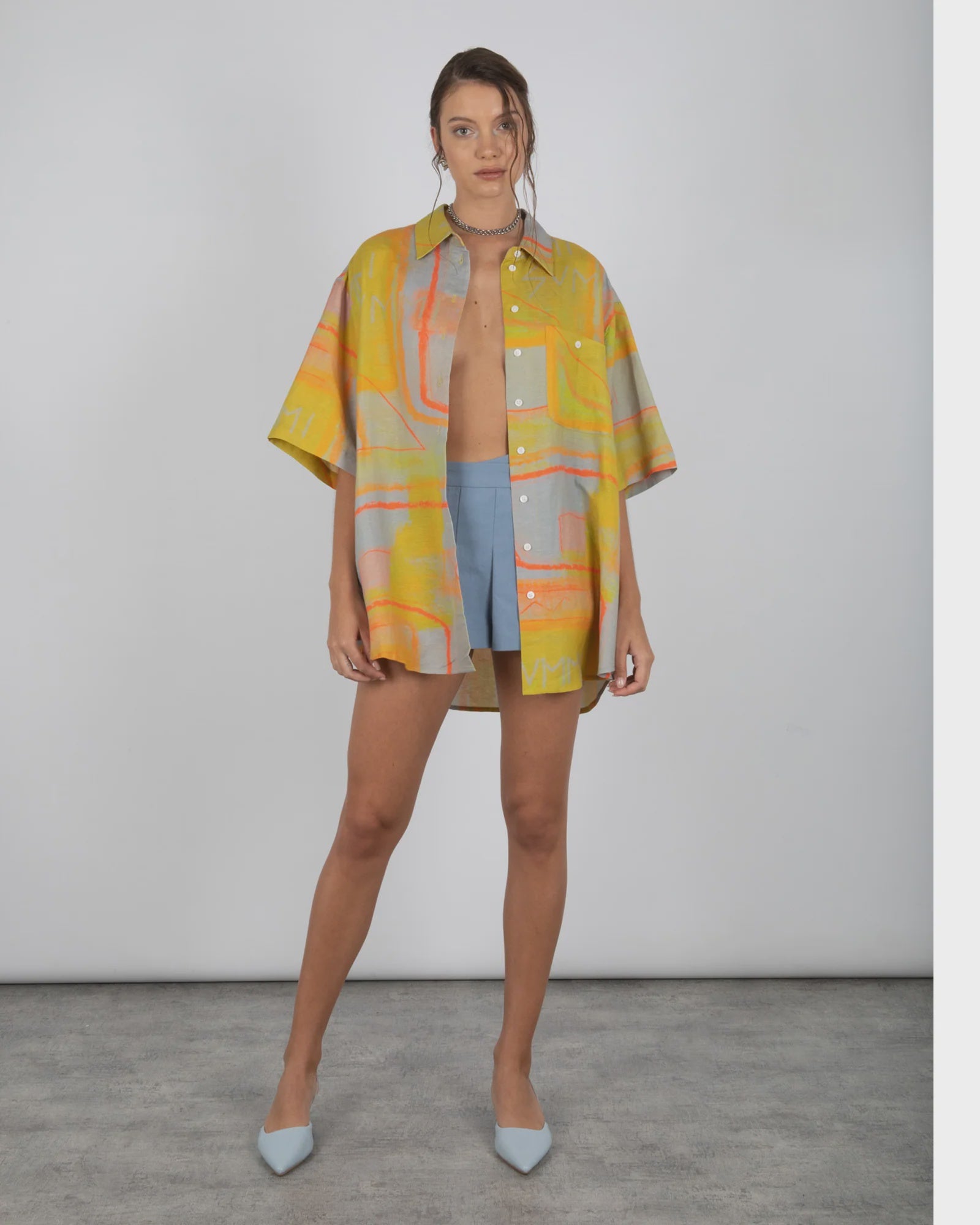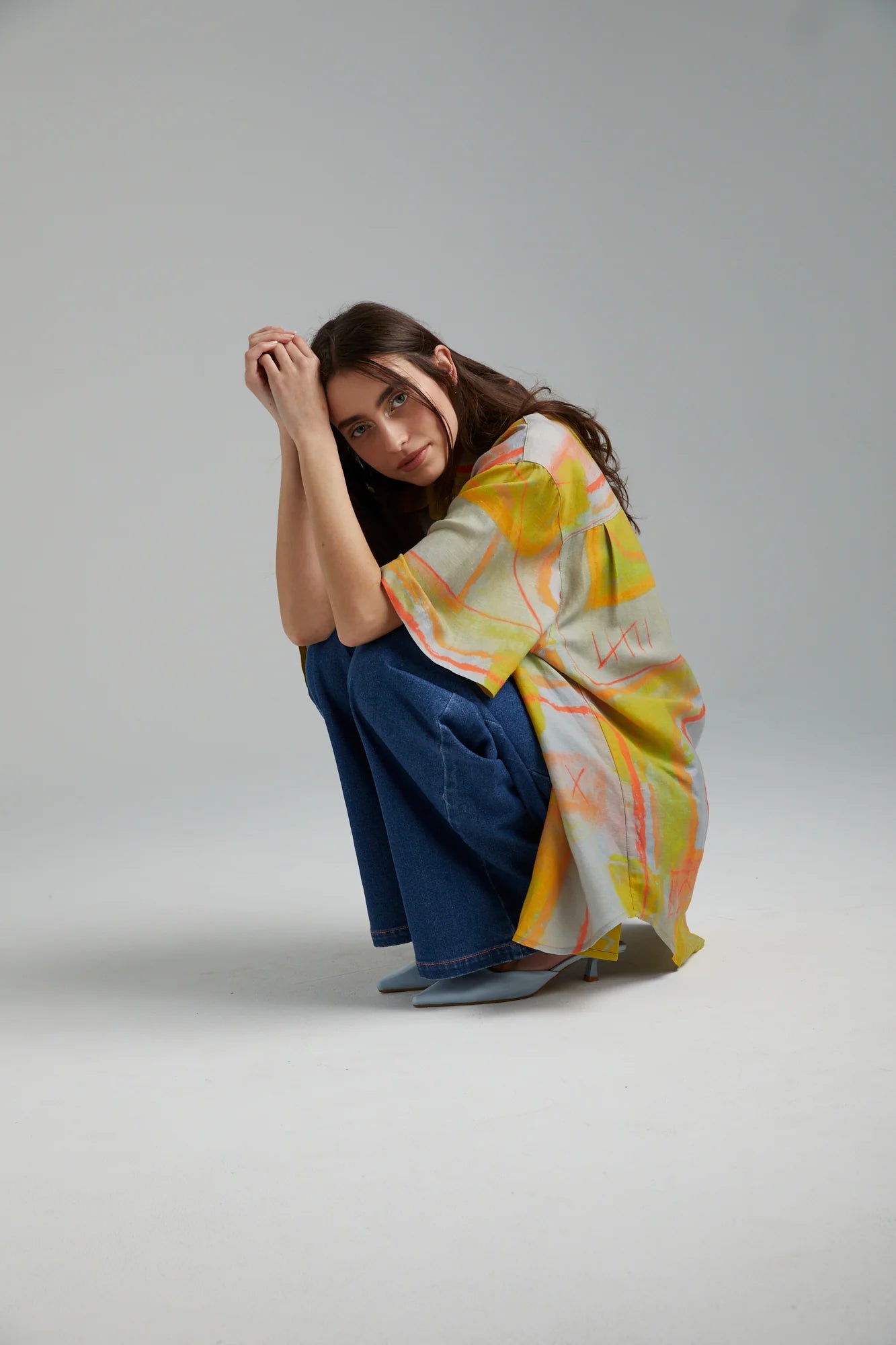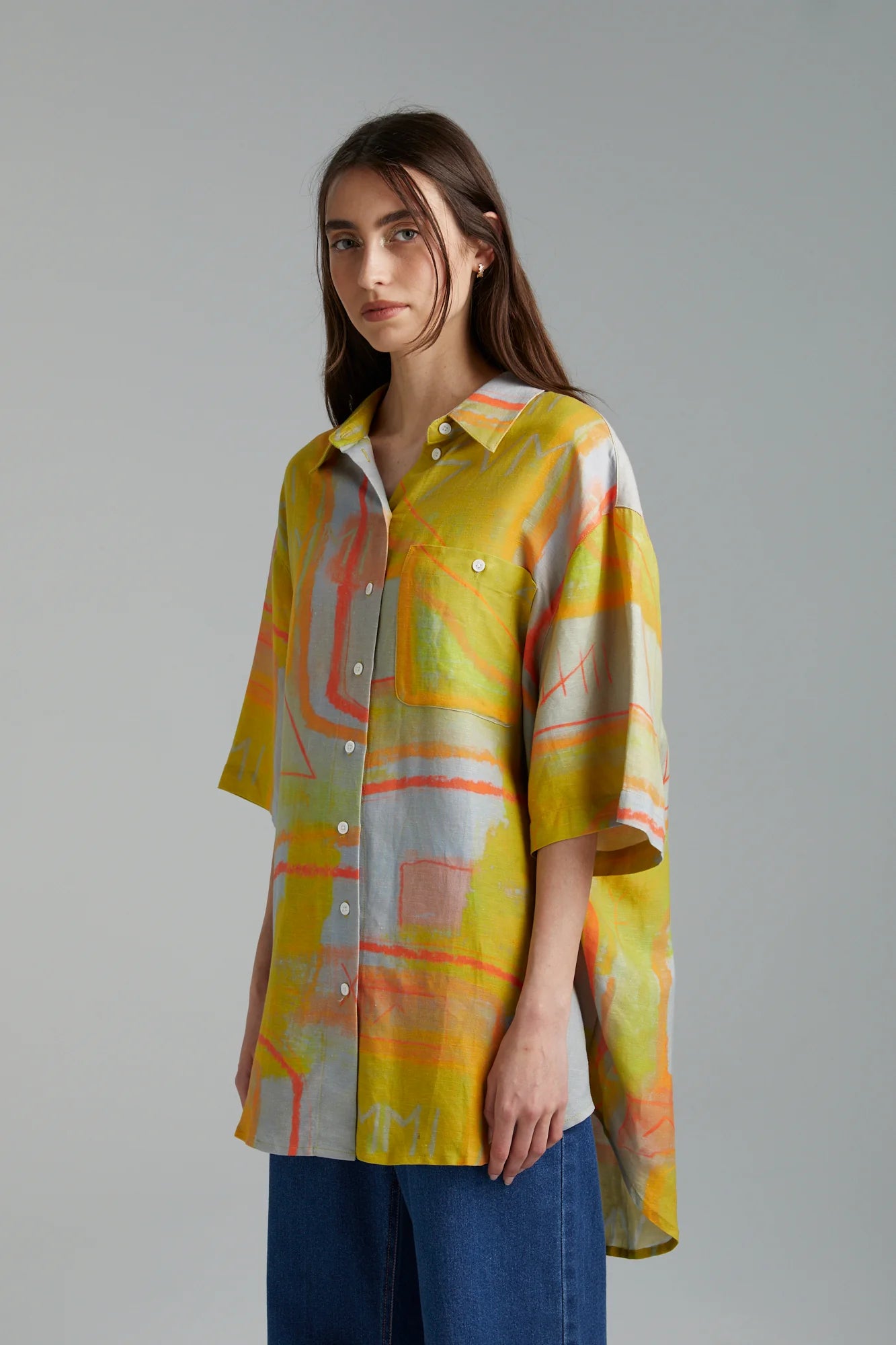 Embrace your playful side in our gender neutral Big Shirt - Sigil . This bold print encourages you to live in the moment and make each day count. Comfortable and stylish, it's the perfect staple for any wardrobe. No time like the present (literally)!