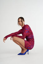 The LS RUCHED DRESS has been expertly designed to flatter the silhouette, featuring a high neckline and long sleeves. Crafted from a supple stretch fabric, this dress showcases the hand-painted JAM LILY print and can be easily ruched to your desired length and fit.