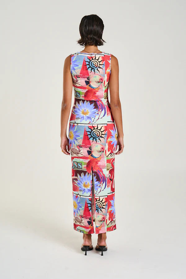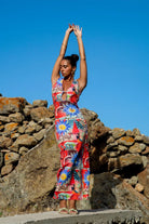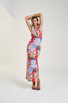 The Miami Maxi Dress in the distinctive Dazed print offers an elegant design with a deep v-neck and a keyhole detail secured by a clasp. Designed to flatter and highlight your figure, this dress accentuates the feminine form to achieve a flawless silhouette.