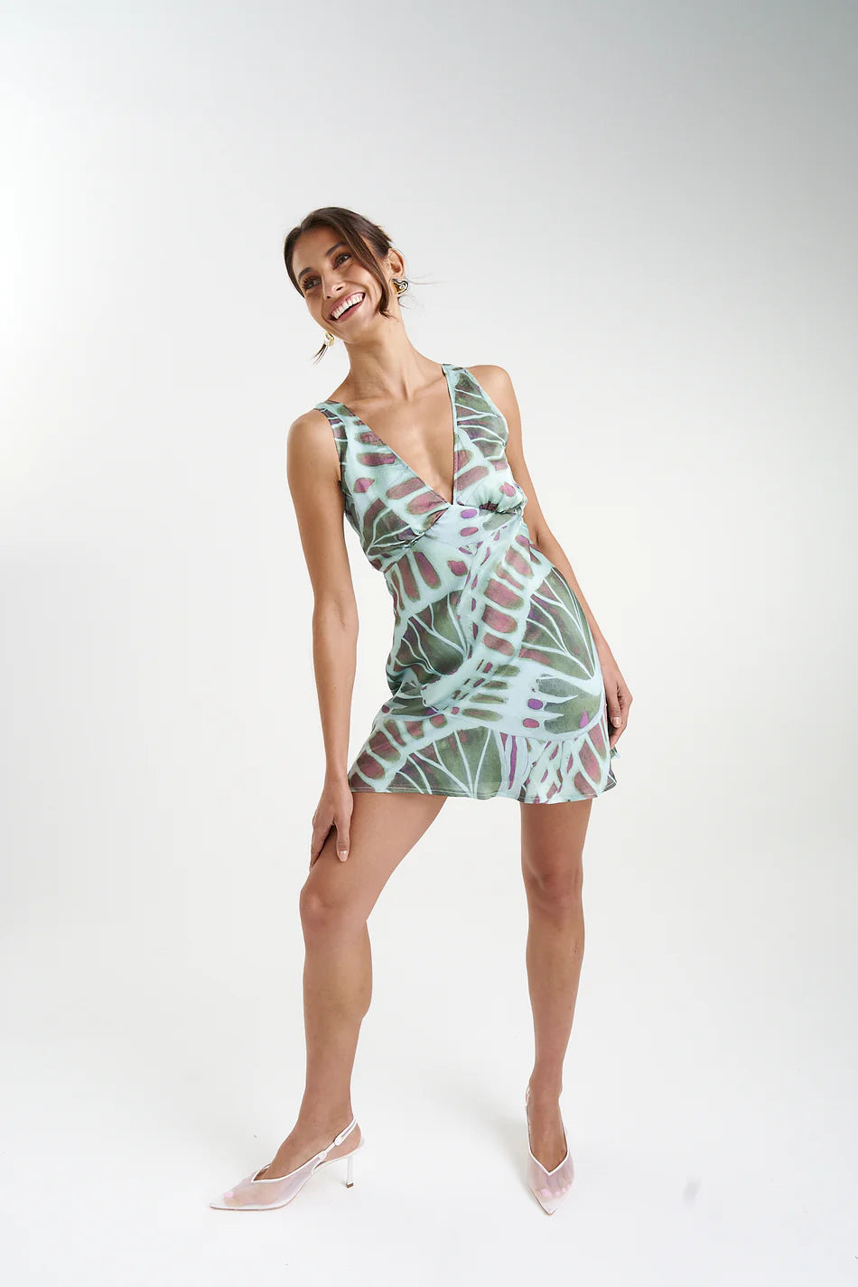 The Sweetheart Dress featuring the VICEROY print boasts a v-neckline and flowing skirt finish for an elegant timeless design.