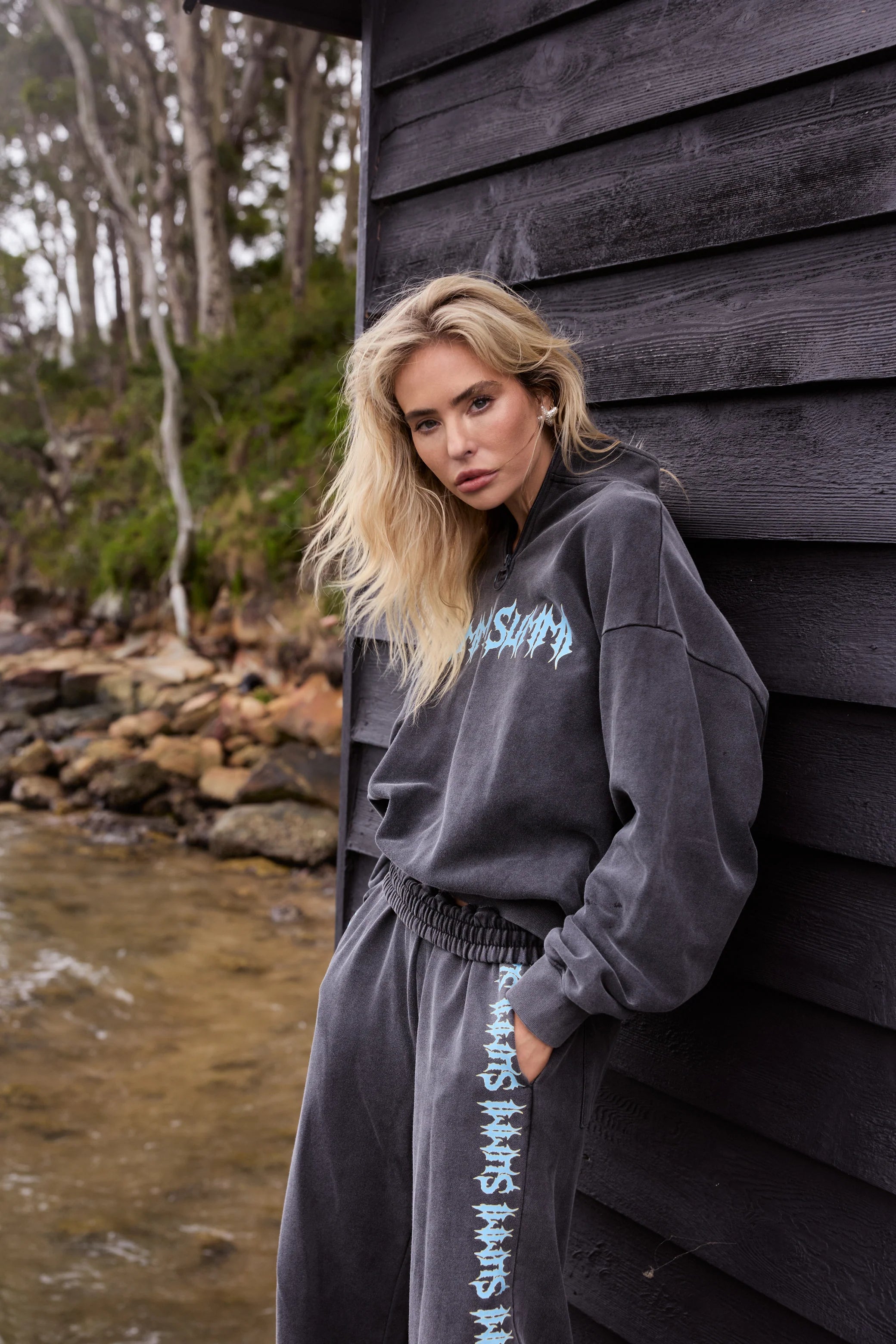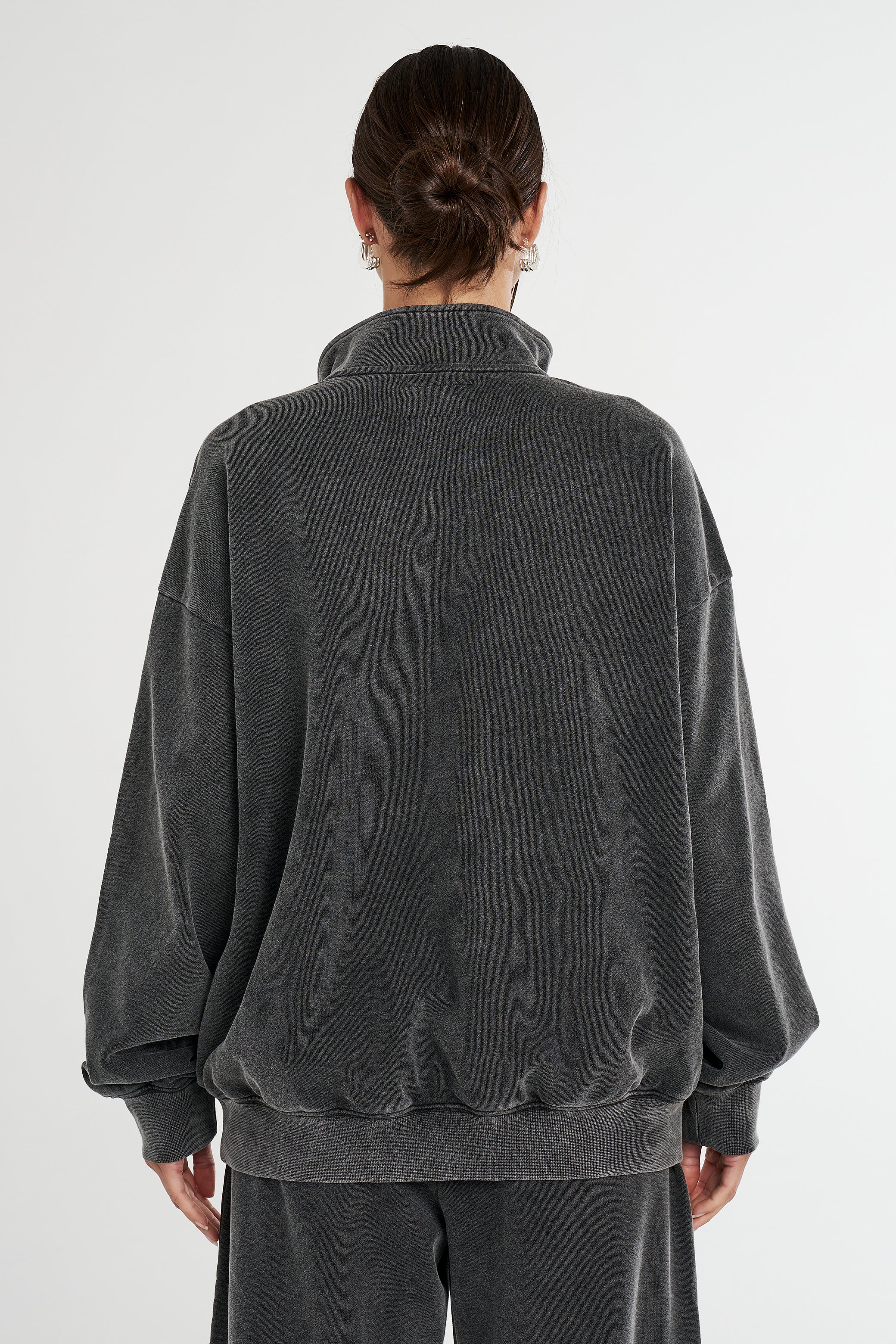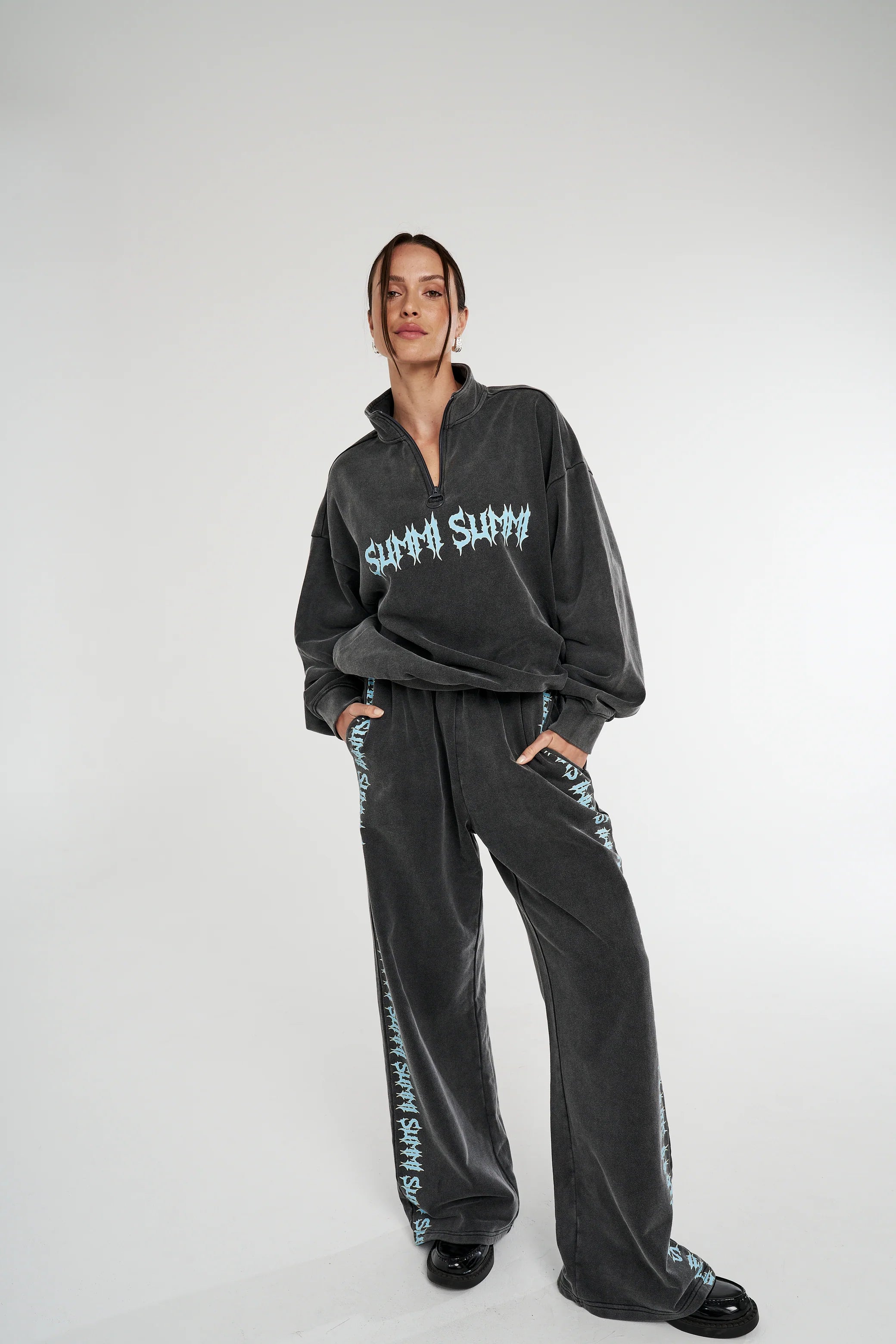 The Zip Neck jumper is a classic oversized fit designed to be gender neutral. Made from 100% cotton French terry in a Washed Vintage Black. Featuring a zip neck line and elongated relaxed shoulders with insane Summi Summi branding across the front.