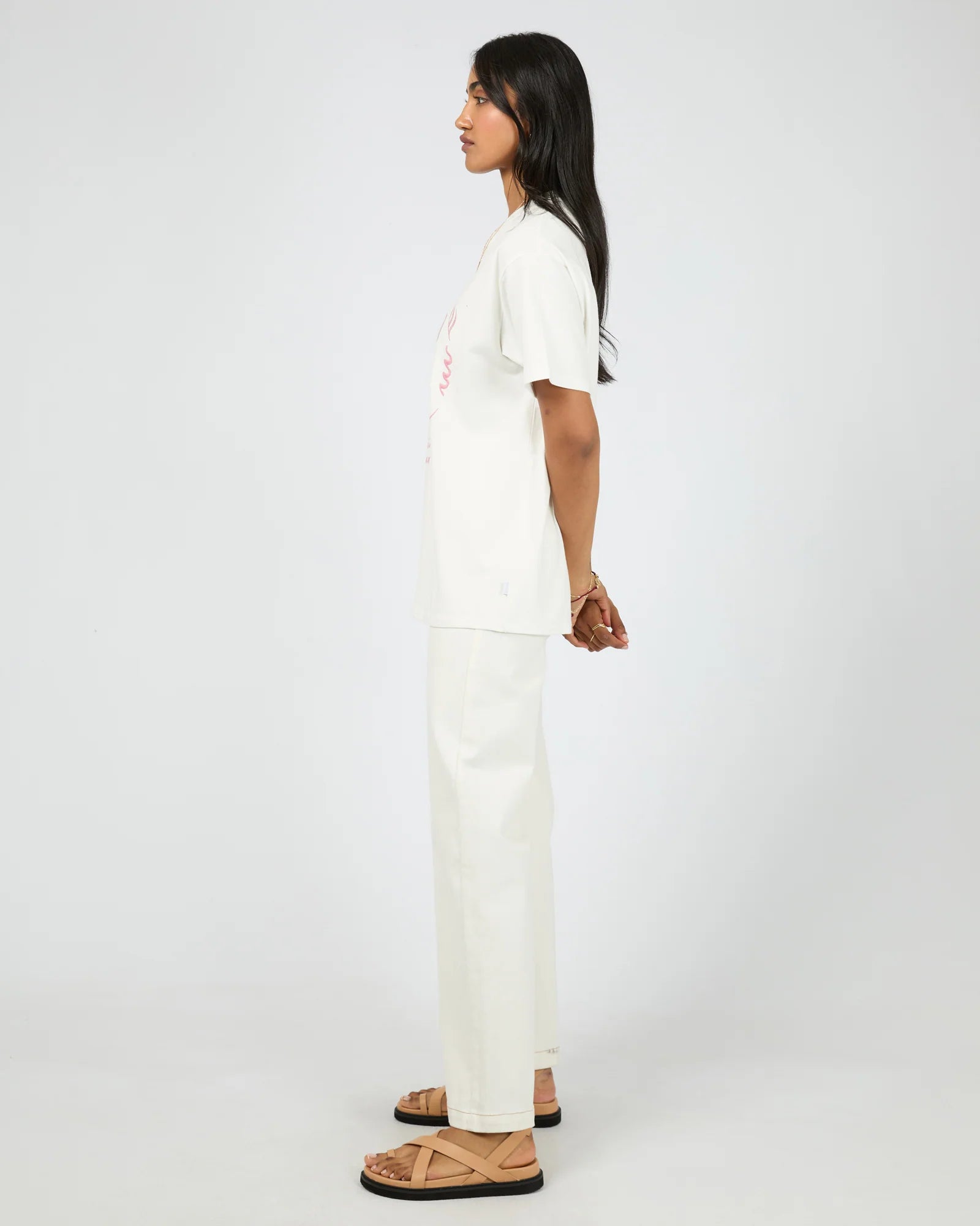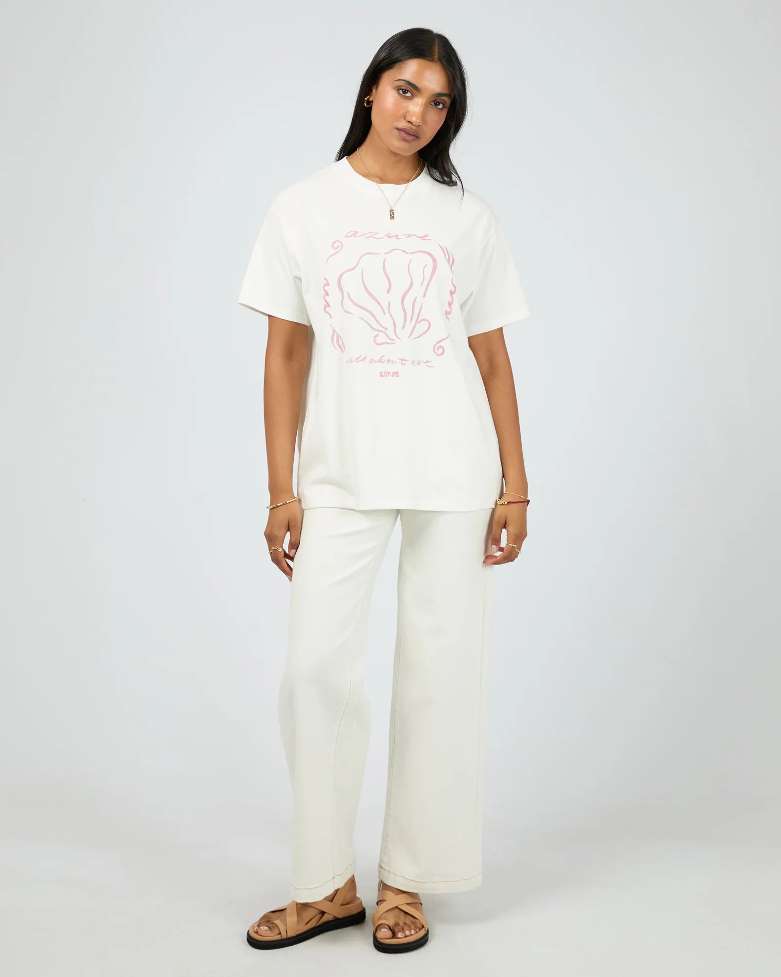 Effortless and easy to wear, the Azure Relaxed Tee is your next warm-weather staple with a lived-in, oversized fit. Featuring a ribbed crew neckline and a hand drawn graphic on the chest that feels like the perfect touch for endless coastal days spent chasing the sun. This tee is a timeless go-to for casual styling, perfect paired with denim, shorts, or your favourite jeans.