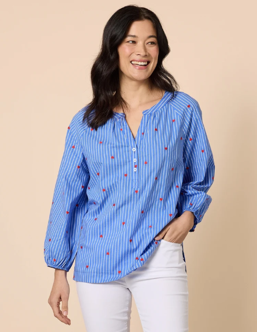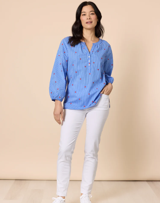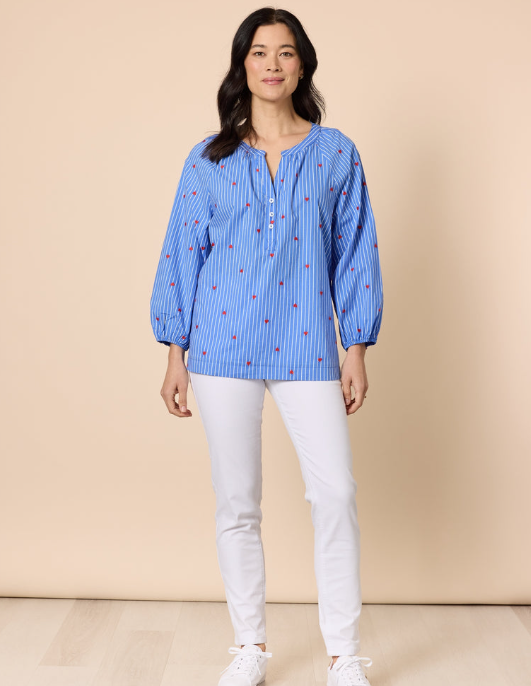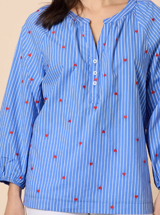 • The Amour Stripe Shirt brings a fresh take on a timeless pattern with a touch of playful charm.