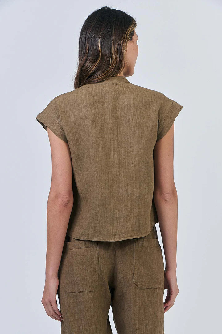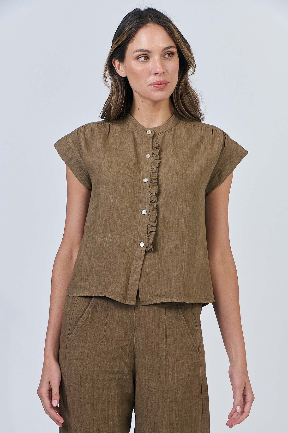 For the days when you want to look put-together without even trying – the GA592 blouse does all the work. Featuring a button-up design and a subtle ruffle detail along the placket, this blouse is all about simple elegance. The cap sleeves add a touch of structure, while the clean, classic back and breathable 100% linen fabric make it an ideal choice for both relaxed afternoons and more structured days.